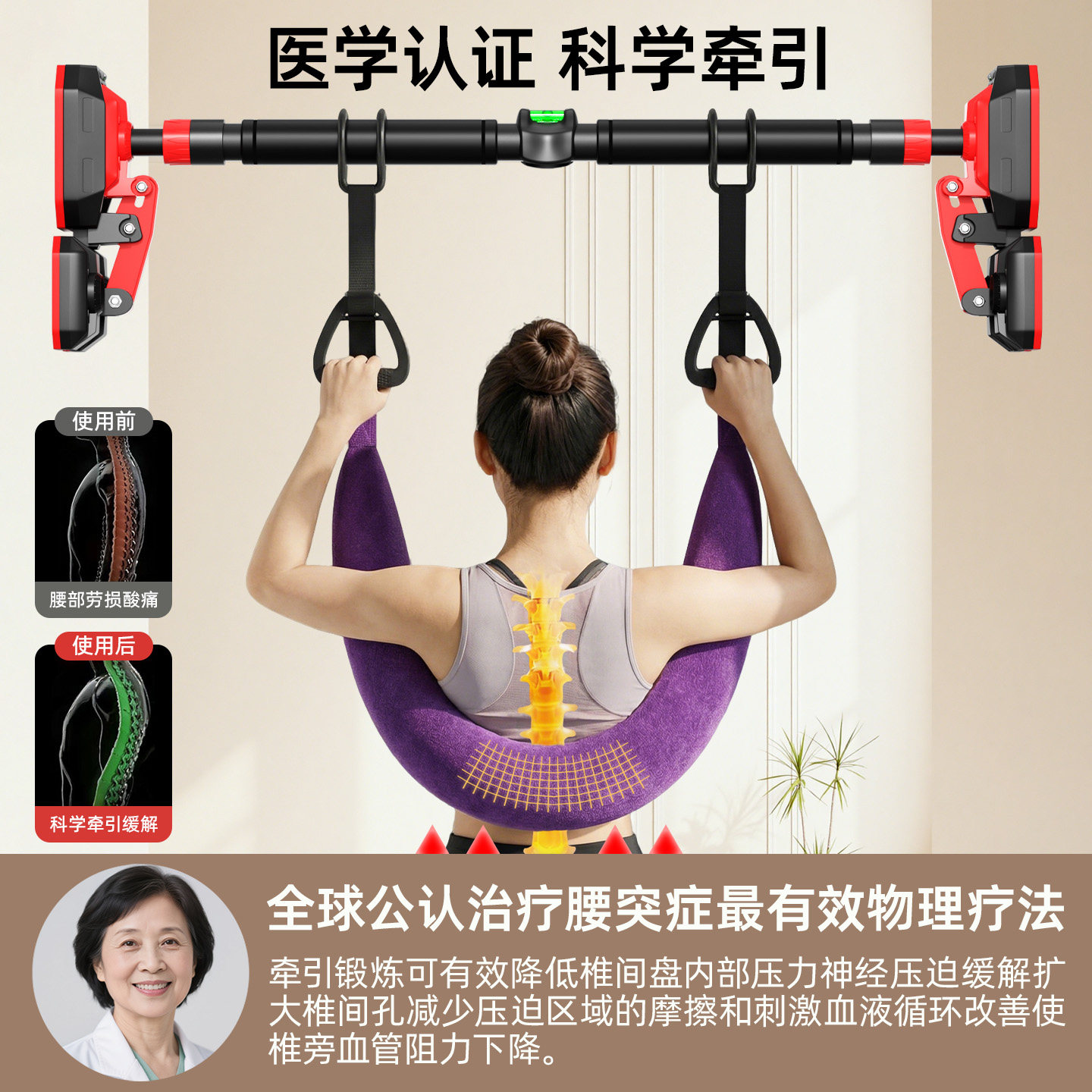 📚 腰椎牵引带单杠室内家用腰突吊带拉伸腰部辅助牵引器腰椎间盘突出