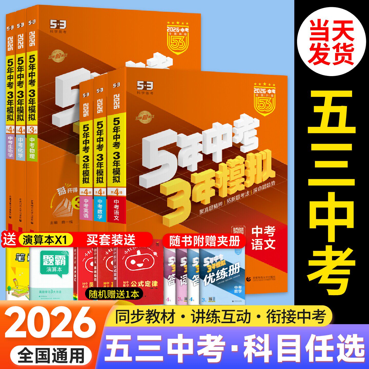 📚 2026五年中考三年模拟中考版语文数学英语物理化学历史政治道法全国通用版九年级53初中练习册八年级生物地理会考总复习资料数学