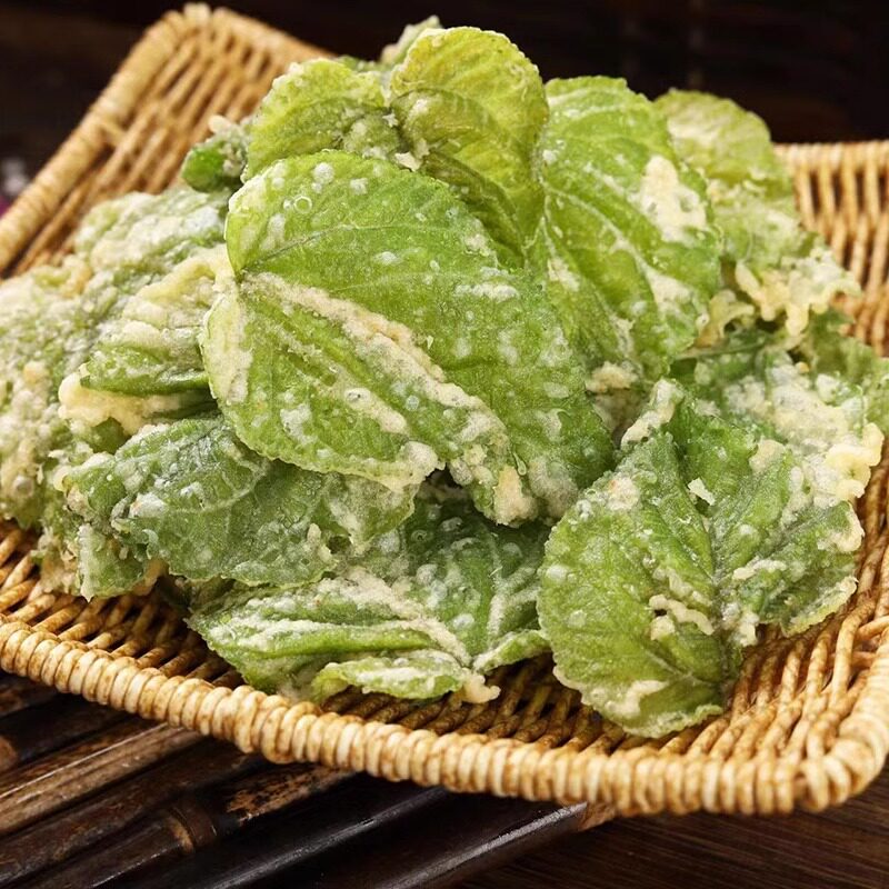 📚 香酥翠叶紫酥叶新鲜桑叶油炸小吃乡厨家宴酒店特色食材方便半成品