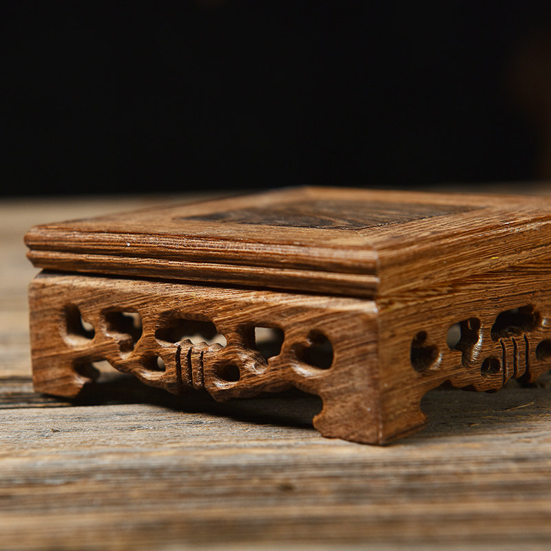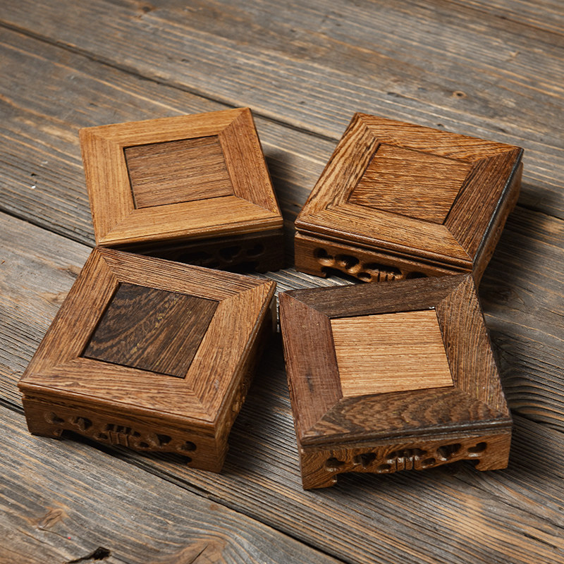 📚 东方泥土 鸡翅木实木底座花瓶花盆栽鱼缸茶壶玉石摆件方形托架