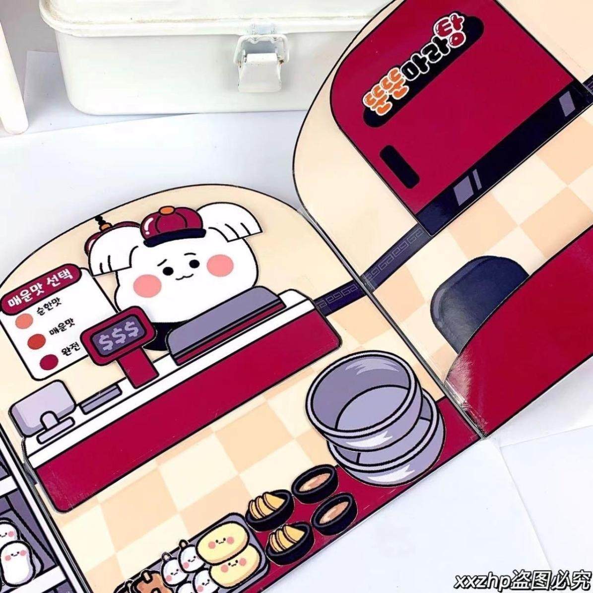 📚 【免裁剪】麻辣烫安静书儿童diy手工自制小吃店创意解压玩具书