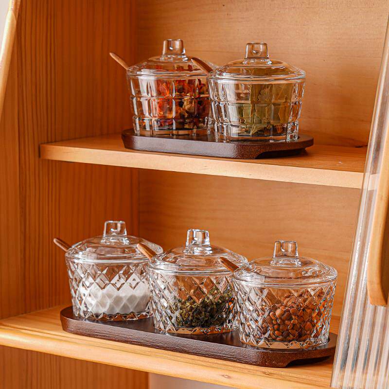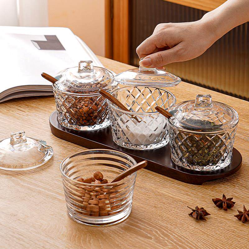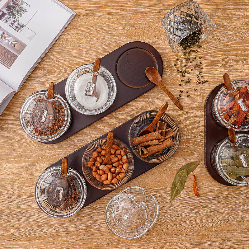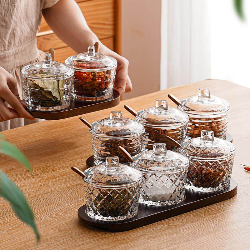 📚 玻璃调味罐家用带盖子子组合套装防潮盐瓶酒店饭厅调味盒厨房日用