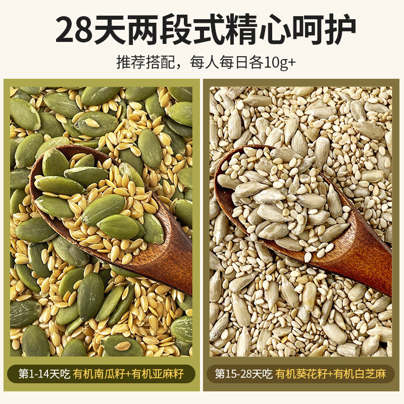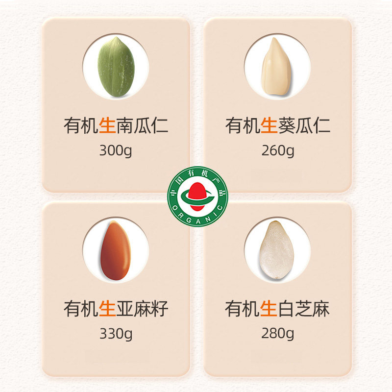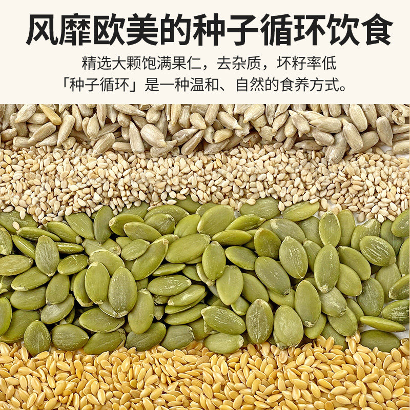 📚 人民食品种子循环法4瓶组合有机南瓜子亚麻籽葵花籽芝麻生熟可选