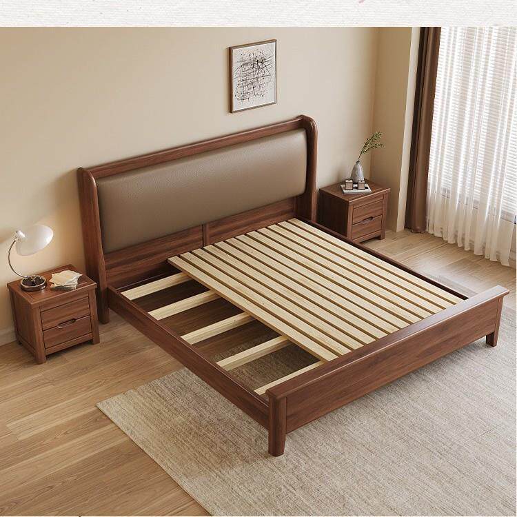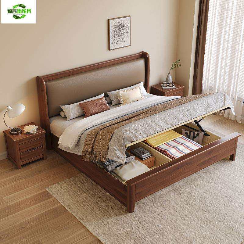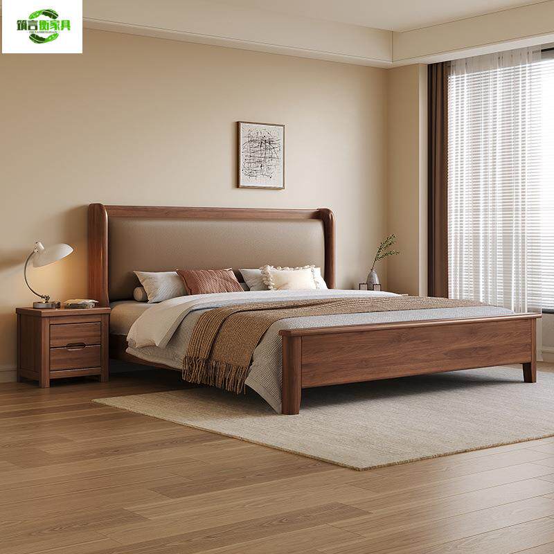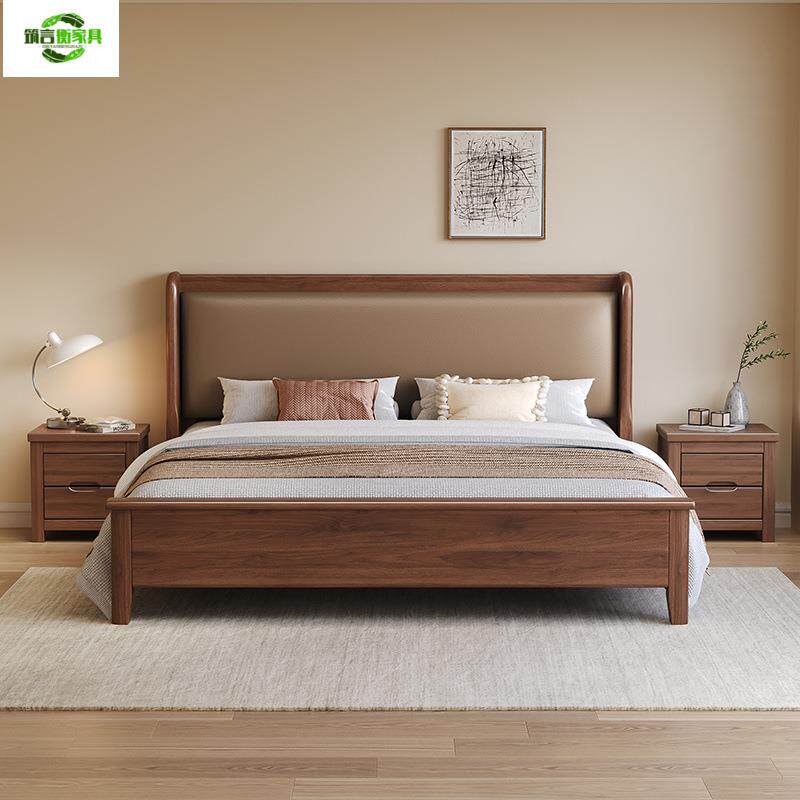 📚 新中式金丝胡桃木实木床主卧大床双人1.8x2米现代简约1.5米软靠婚