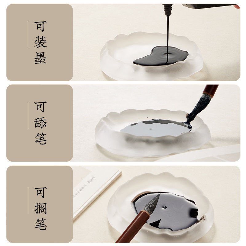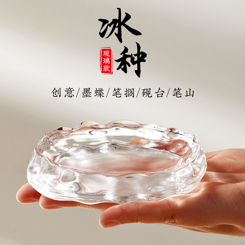 📚 冰种磨砂笔搁砚台墨碟盛墨笔舔毛笔书法国画练习用水晶玻璃墨盘