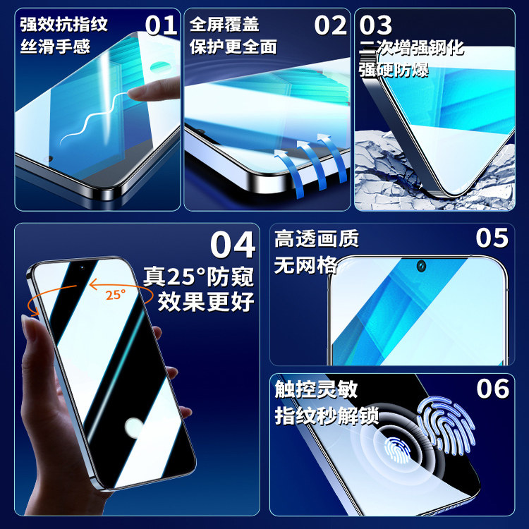 📚 适用iqooneo7钢化膜iqoo15手机膜iqoo13/12防窥膜vivoiqooneo8pro9竞速版iqooz9turbo指纹解锁vivo10偷窥11s
