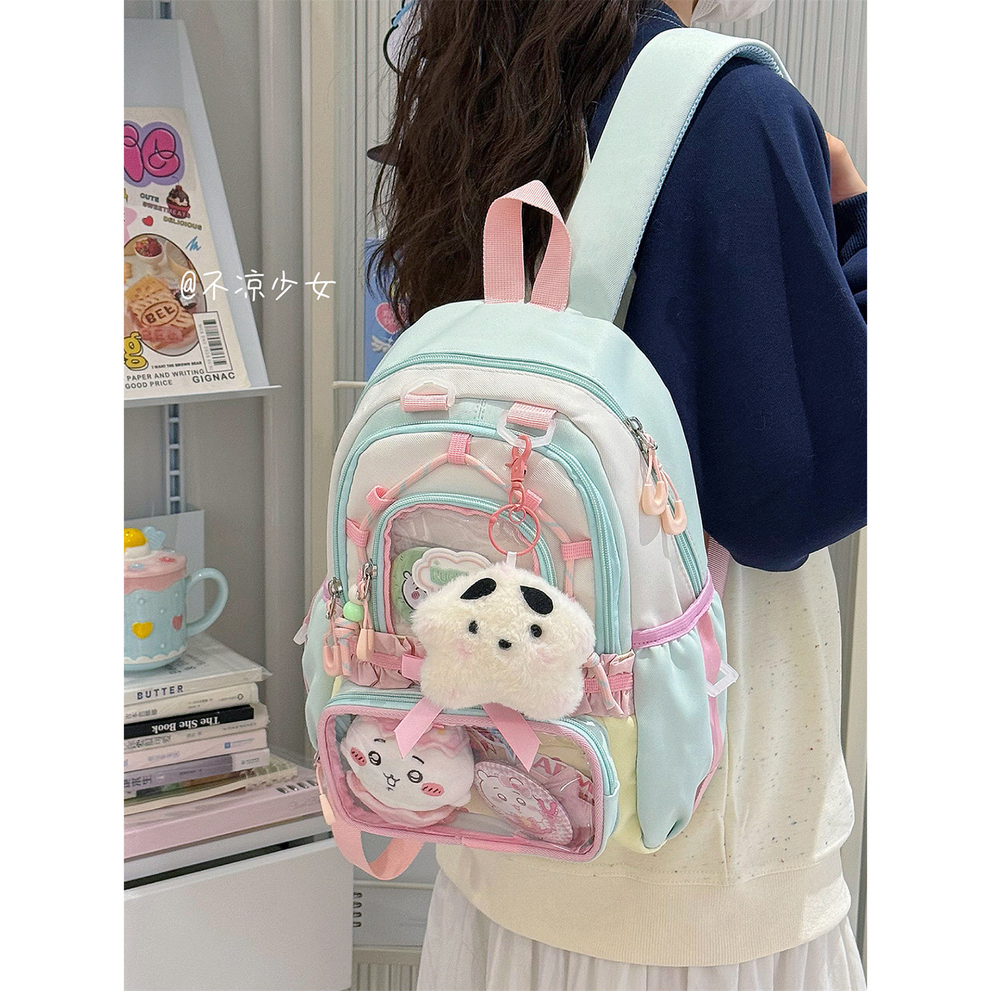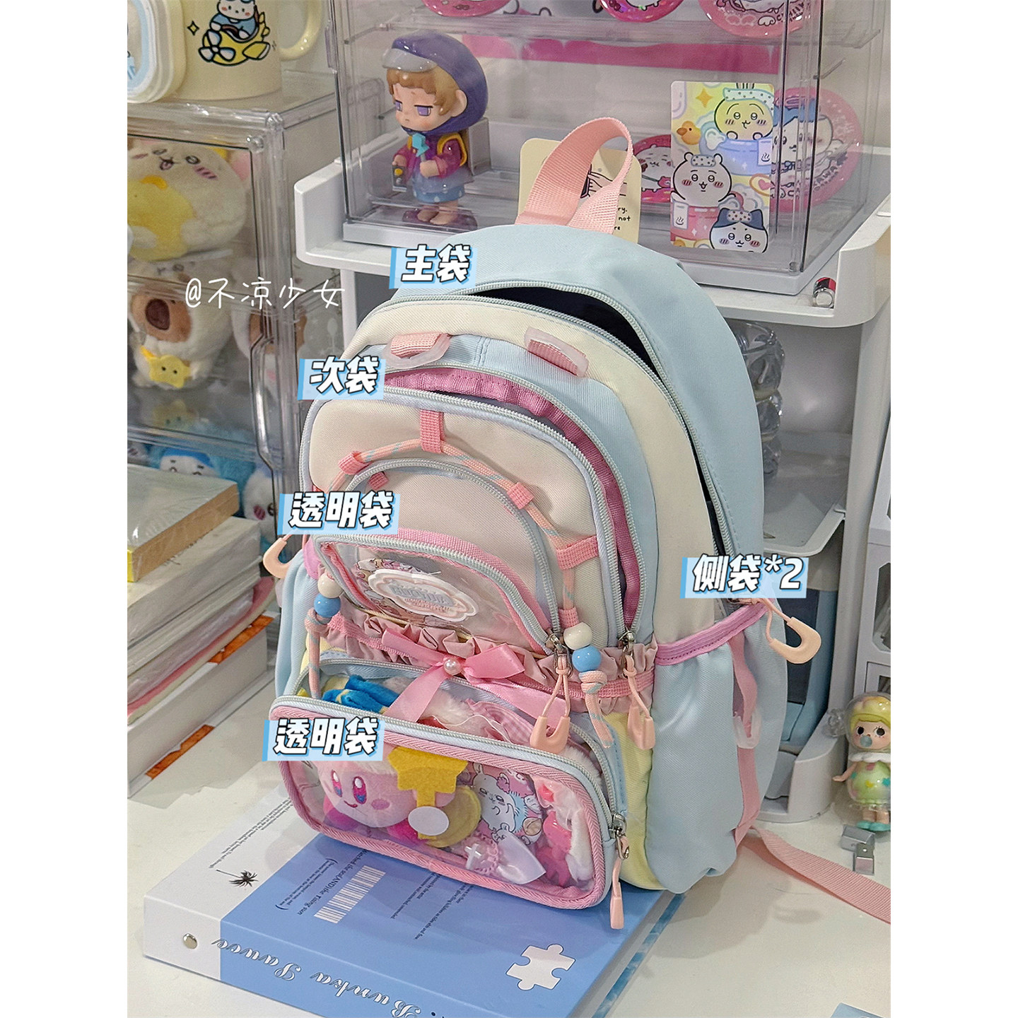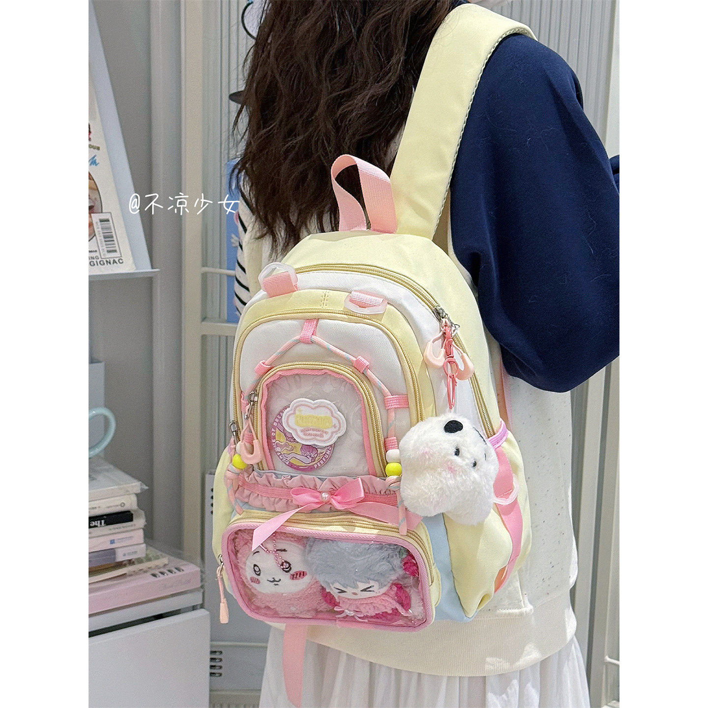 📚 多巴胺撞色初中生小书包高中学生迷你双肩包蝴蝶结荷叶边痛包娃包