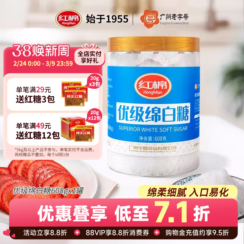 📚 红棉绵白糖优级608g纯正甘蔗糖官方家用烘焙食用细白砂糖散装白糖