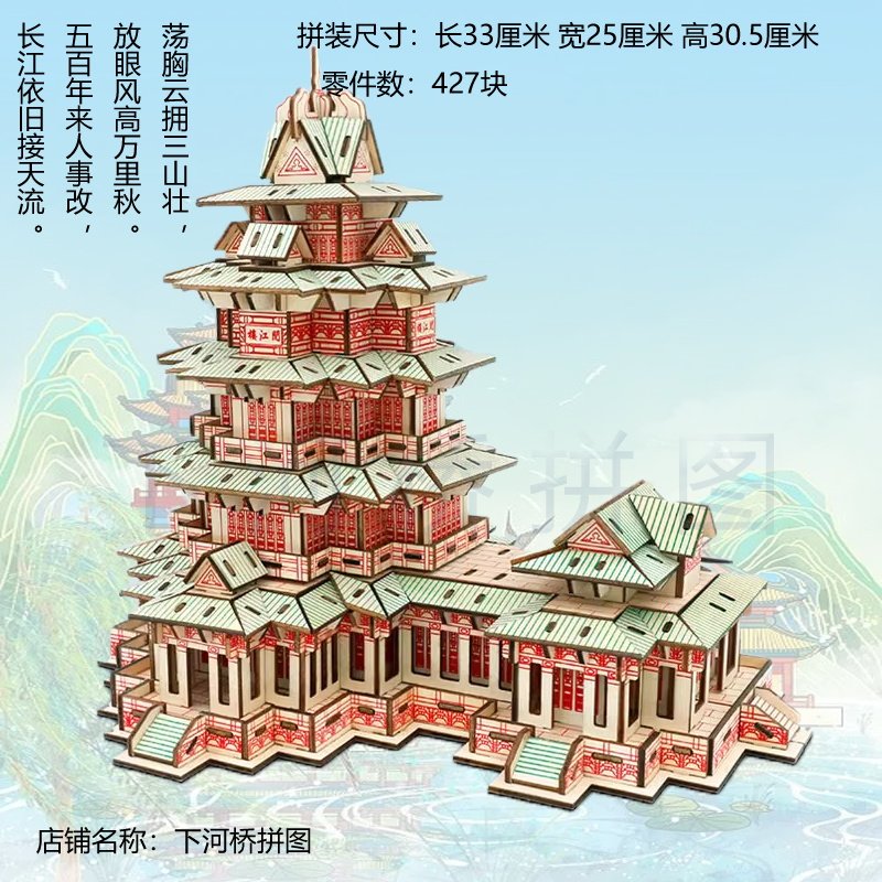 📚 山西应县古风建筑模型释迦牟尼木塔 木质拼装积木立体拼图3d玩具