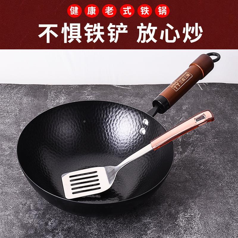📚 章丘小铁锅家用小号铁锅炒菜锅无涂层平底一人用小炒锅26cm28cm