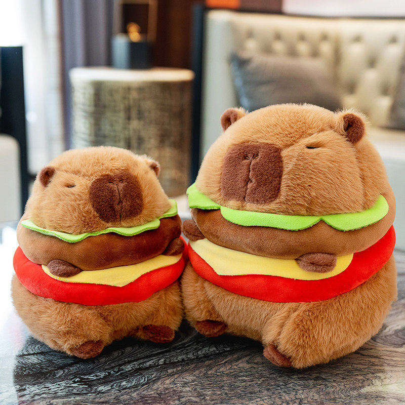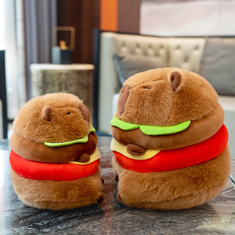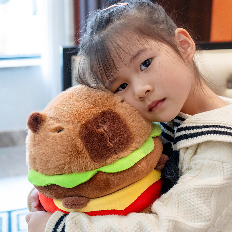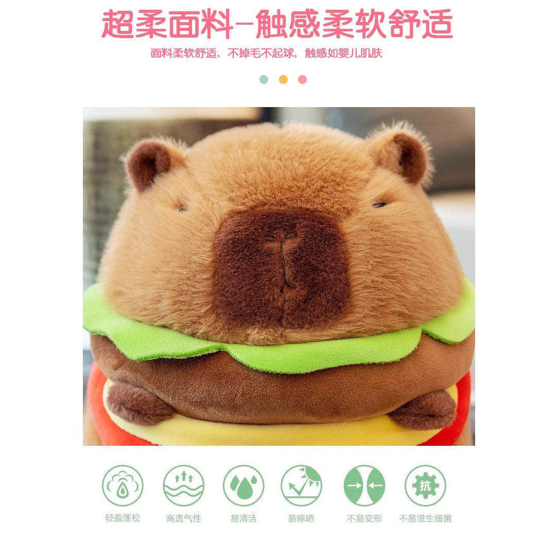 📚 可爱卡皮巴拉公仔汉堡水豚鼠玩偶抱枕毛绒玩具娃娃男女孩生日礼物