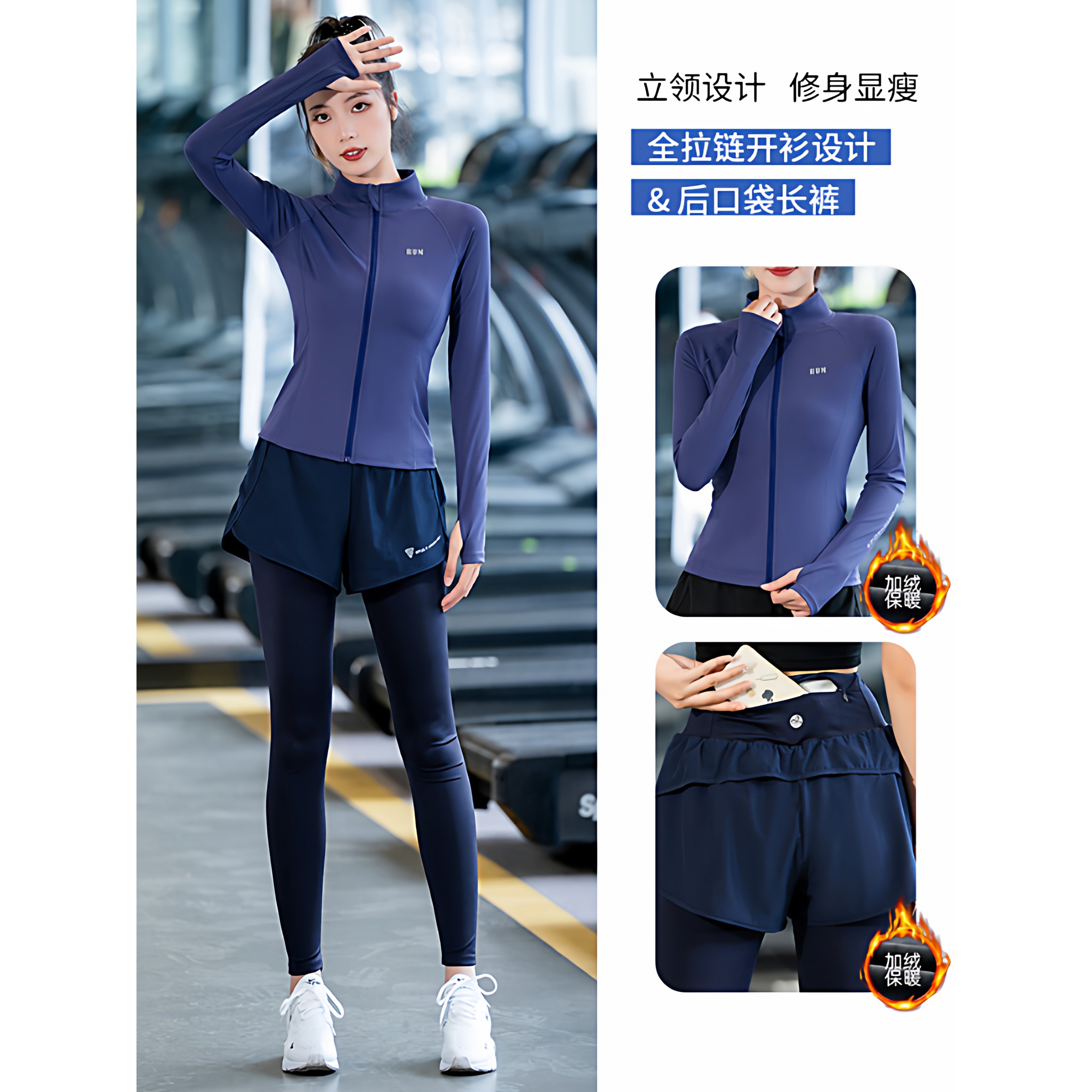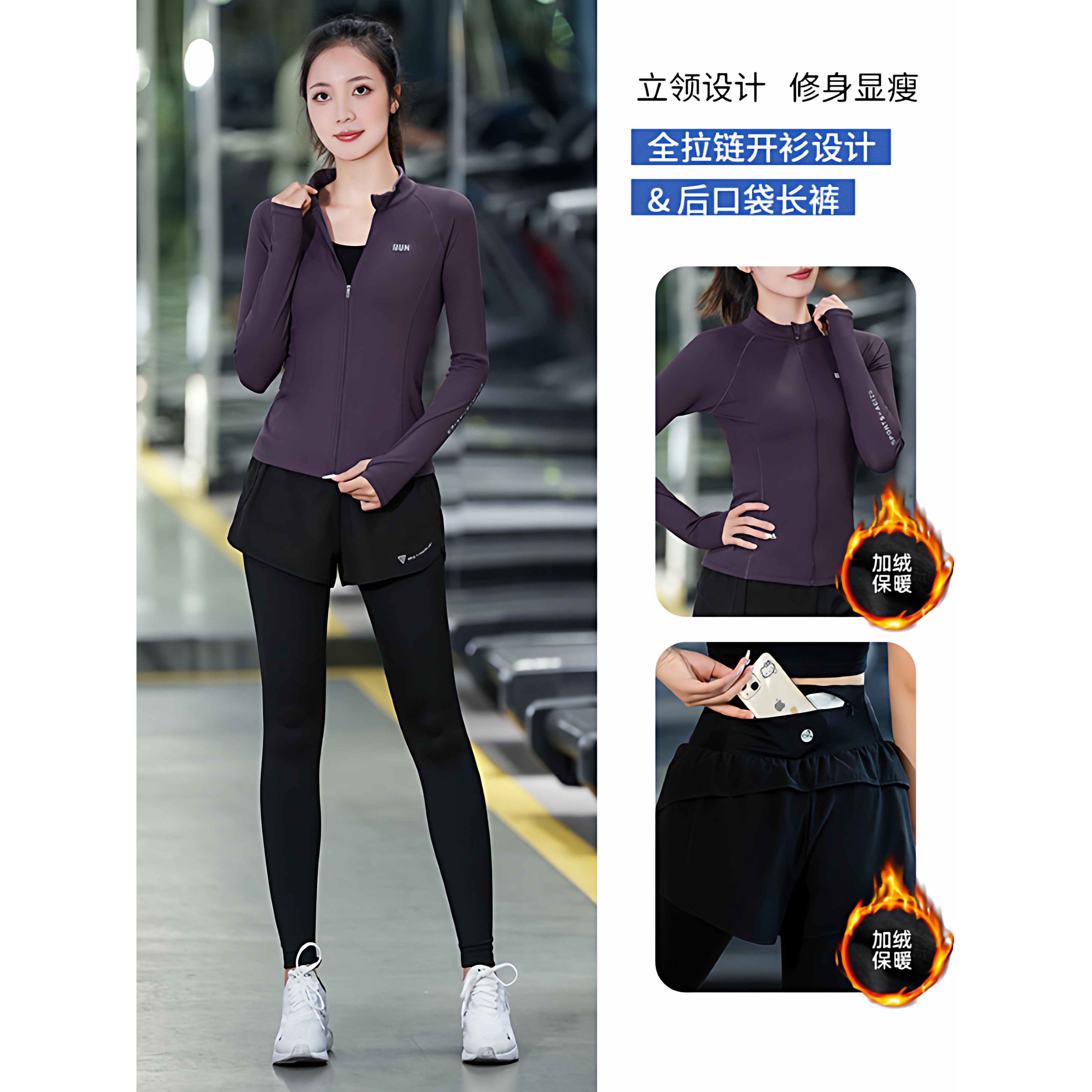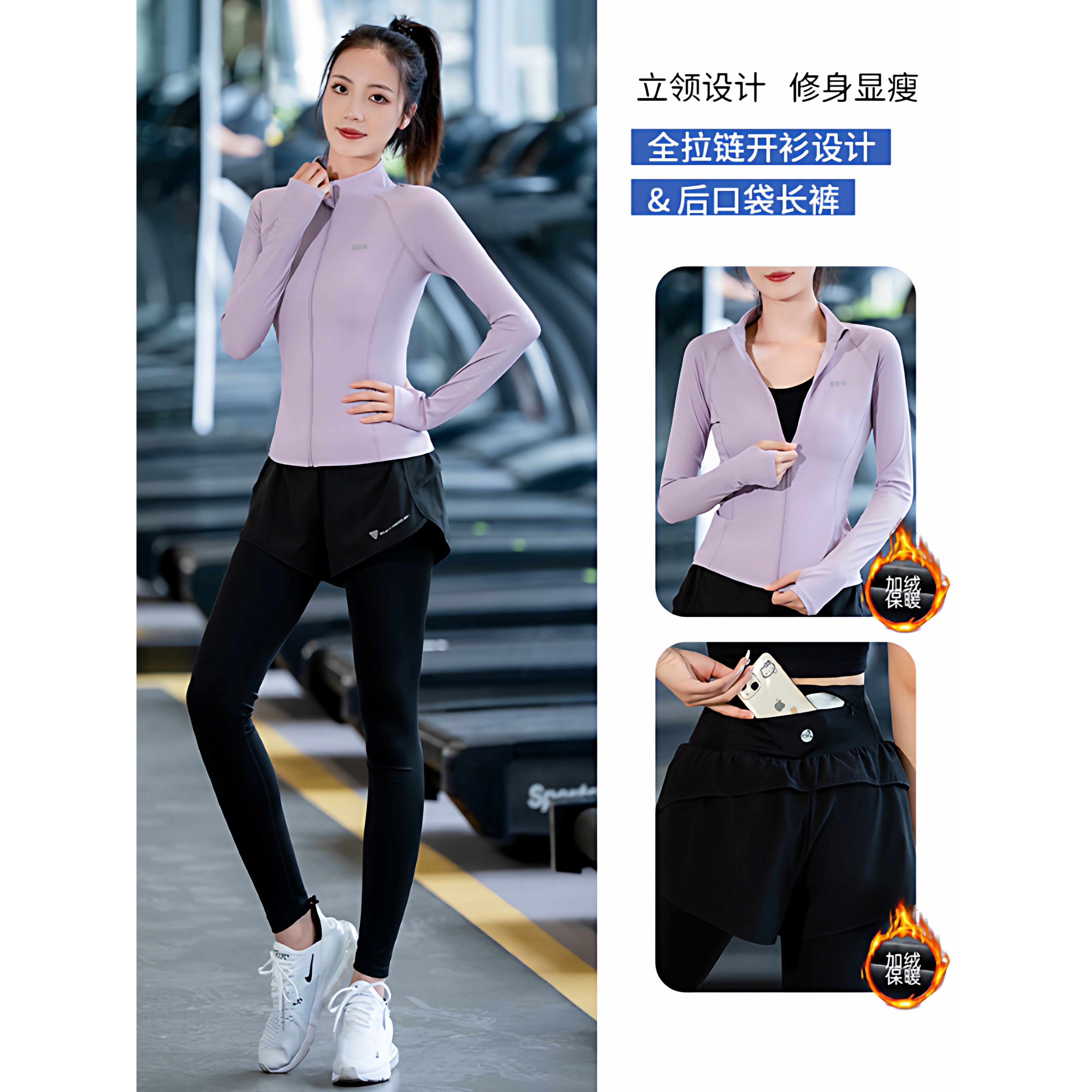 📚 2026新款晨跑速干衣长袖运动服女冬季跑步户外健身瑜伽服加绒套装