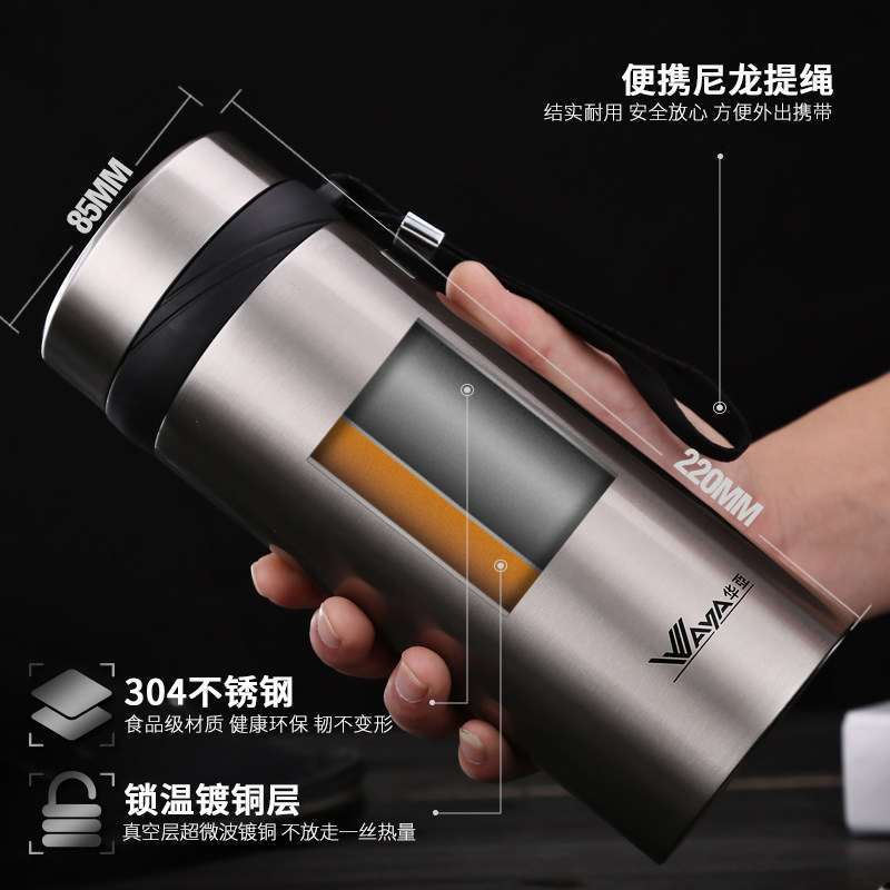 📚 华亚保温杯大容量男士高档学生便携刻字304不锈钢正品水杯1000ml