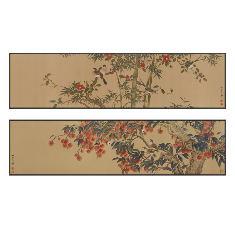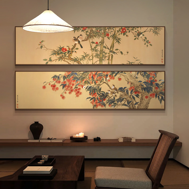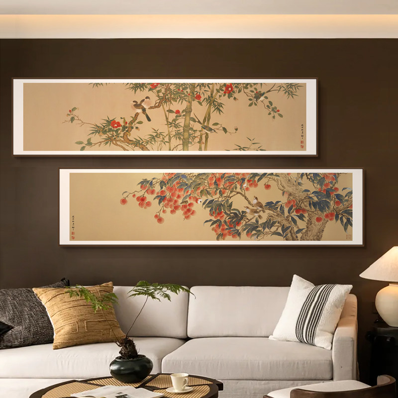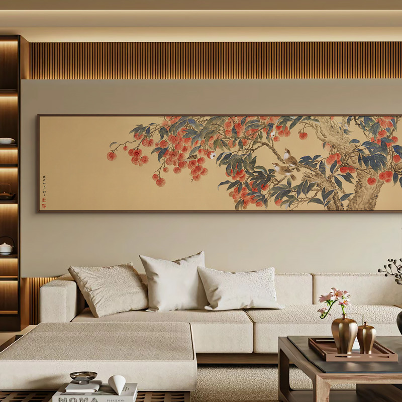 📚 新中式茶餐厅荔枝图装饰画客厅书房背景风景画办公室长条横幅挂画