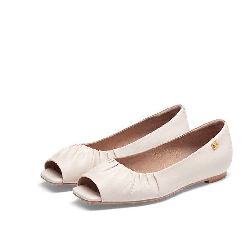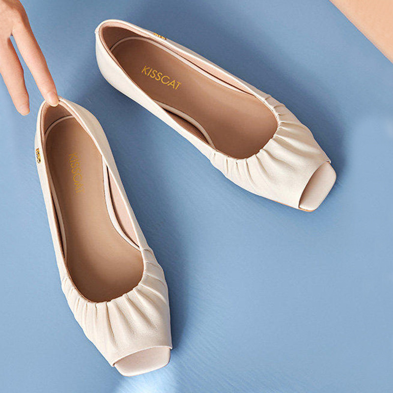 📚 KISS CAT/接吻猫春夏羊皮褶皱鱼嘴凉鞋低跟浅口单鞋女KA54169-11