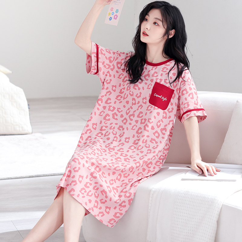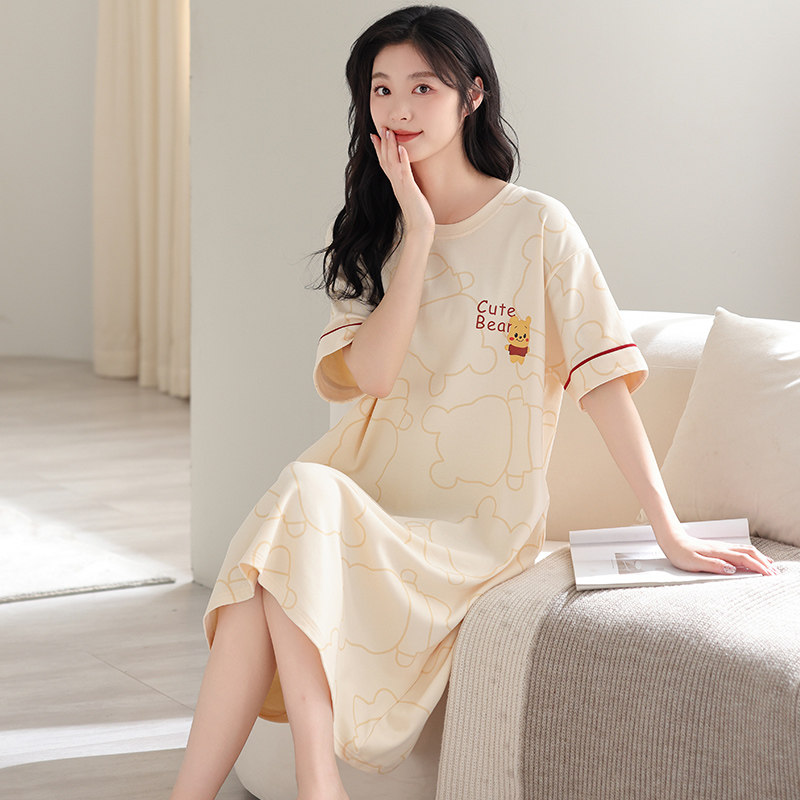 📚 100%纯棉短袖睡裙女夏季全棉睡衣中长裙学生韩版条纹可外穿家居服