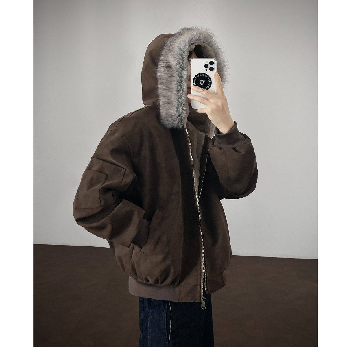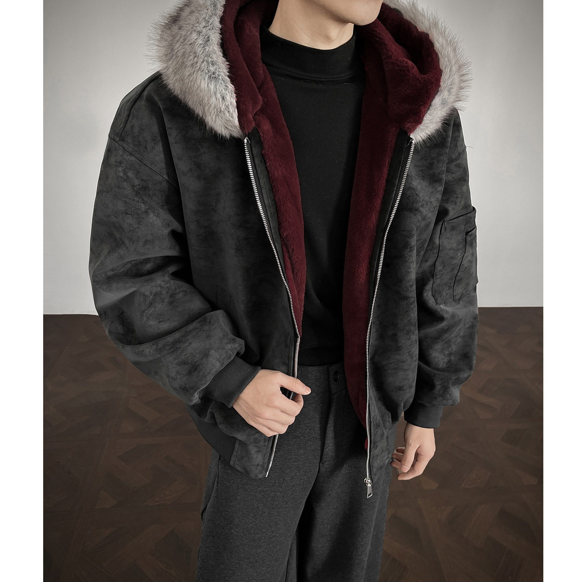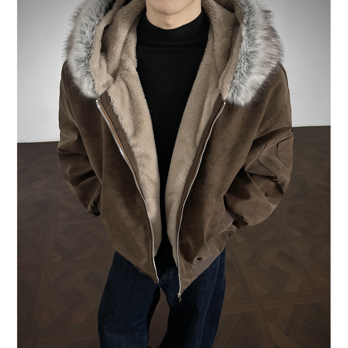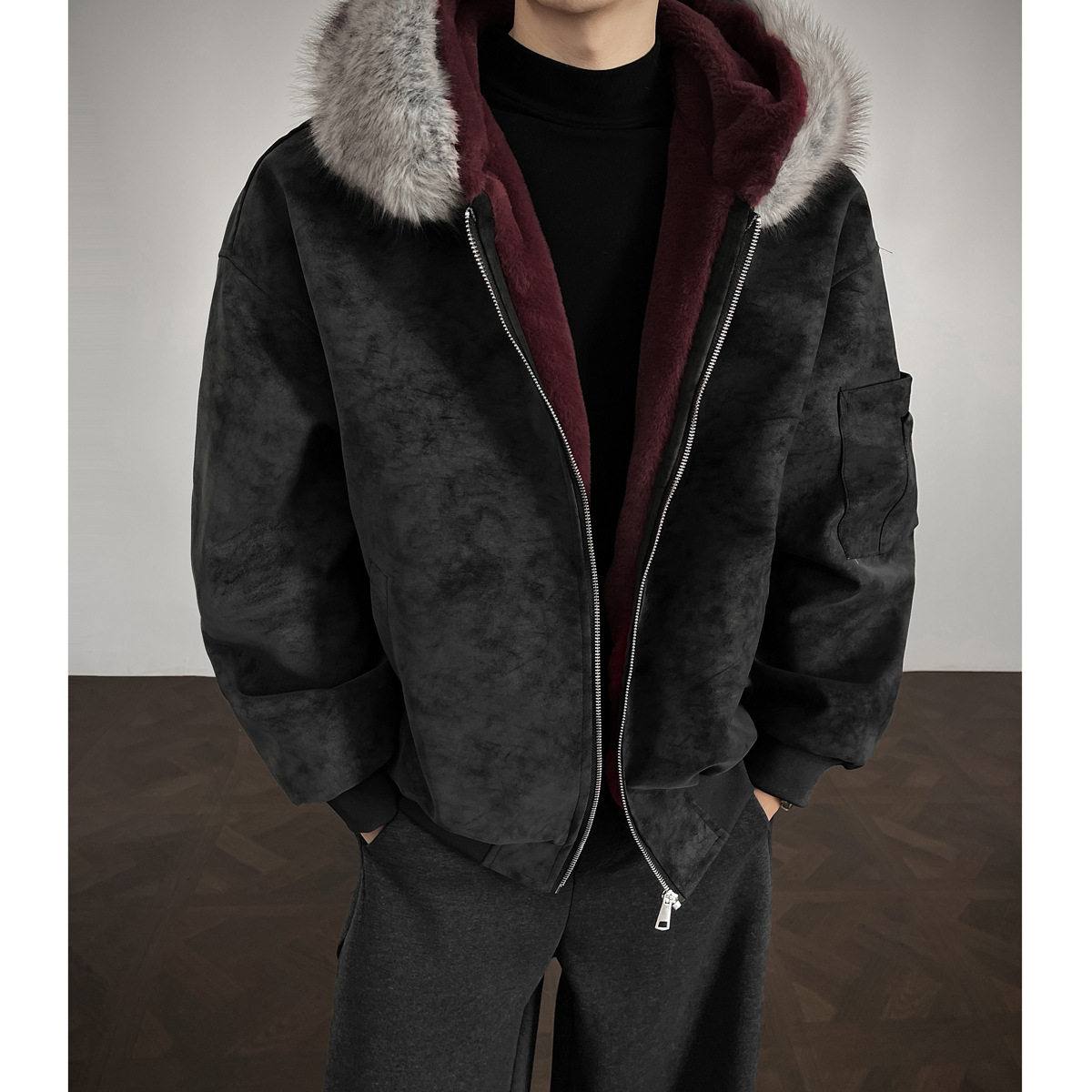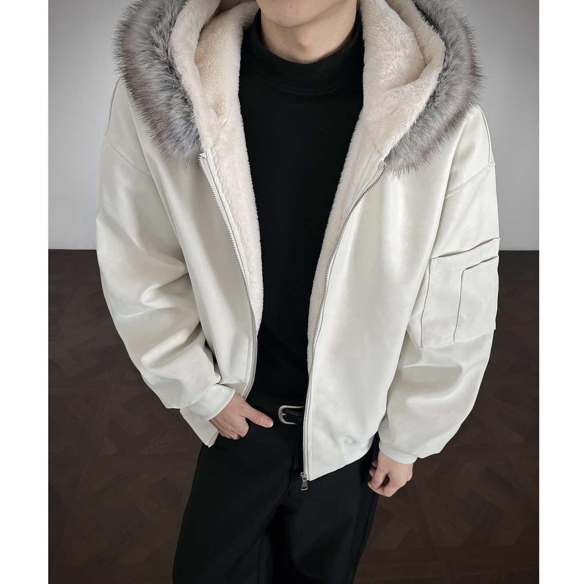 📚 宅男社秋冬新款男士可拆卸毛领皮衣棉衣内里全毛外套宽松保暖棉服