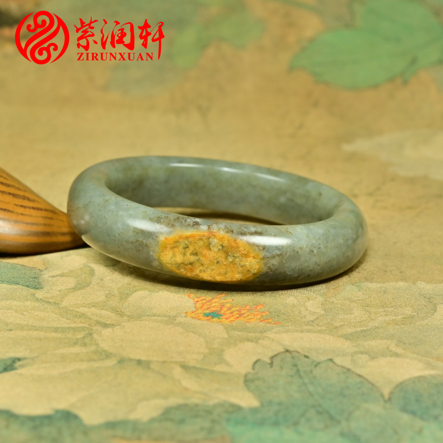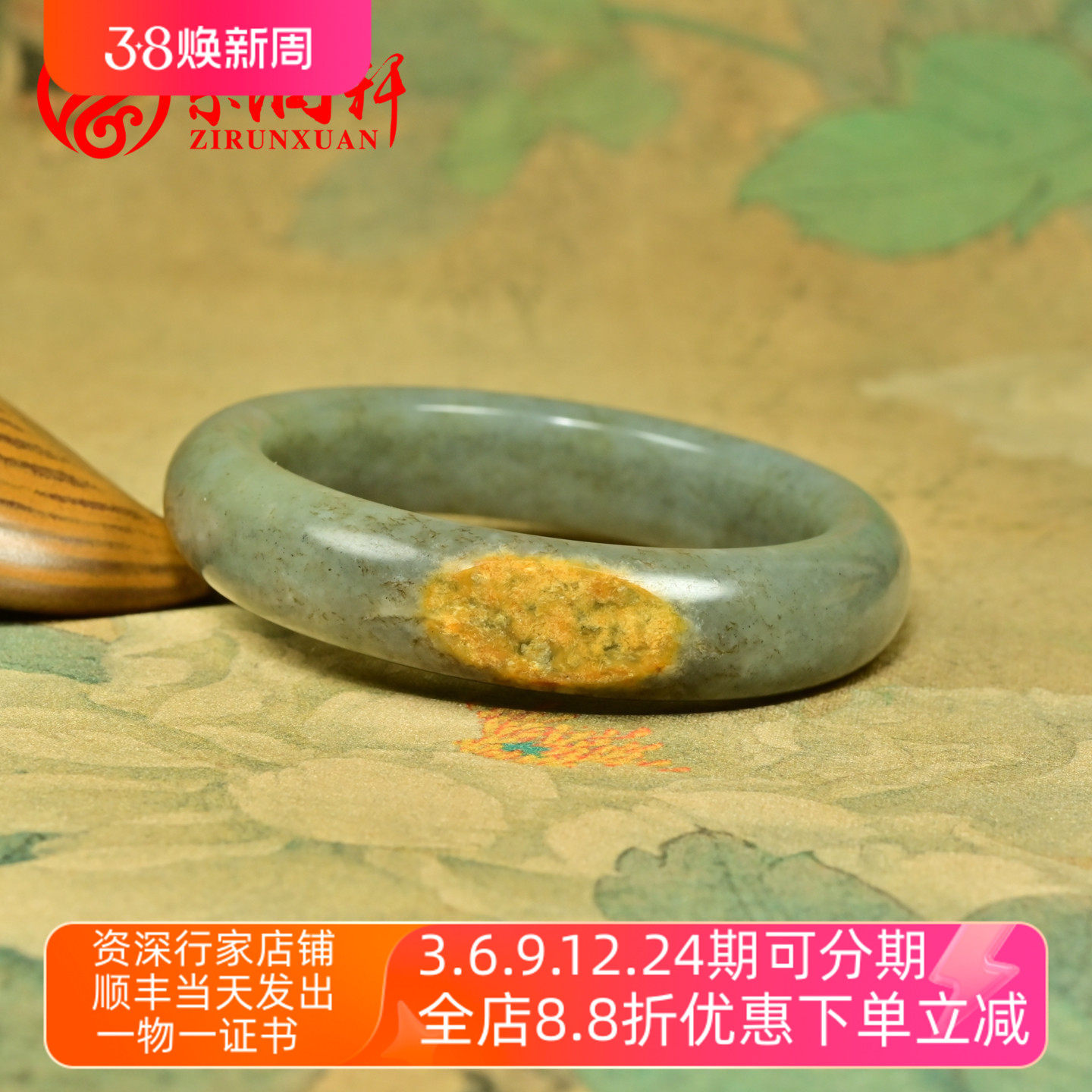 📚 紫润轩新疆和田玉糖沁籽料手镯59MM聚黄沁皮青白青花底俏色收藏级