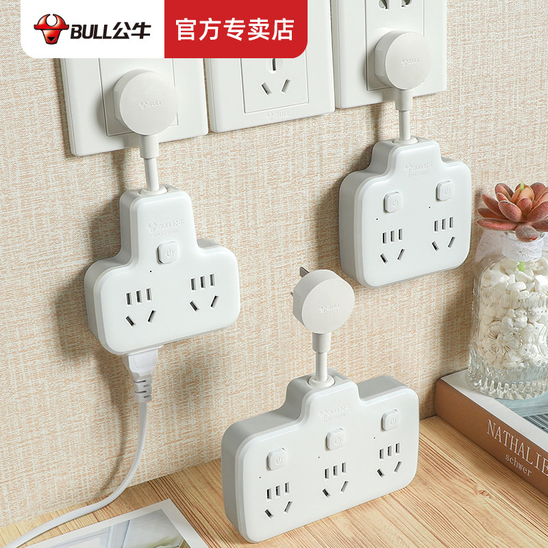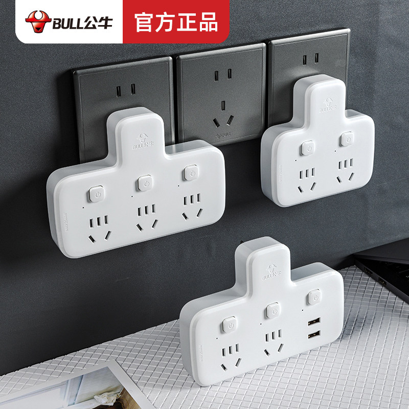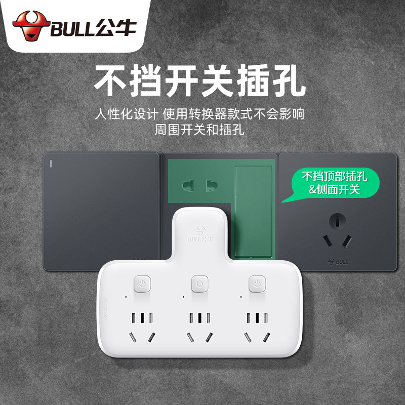 📚 公牛一变多用插座万能转换无线品字厨房插排板扩展插头转换器靠墙