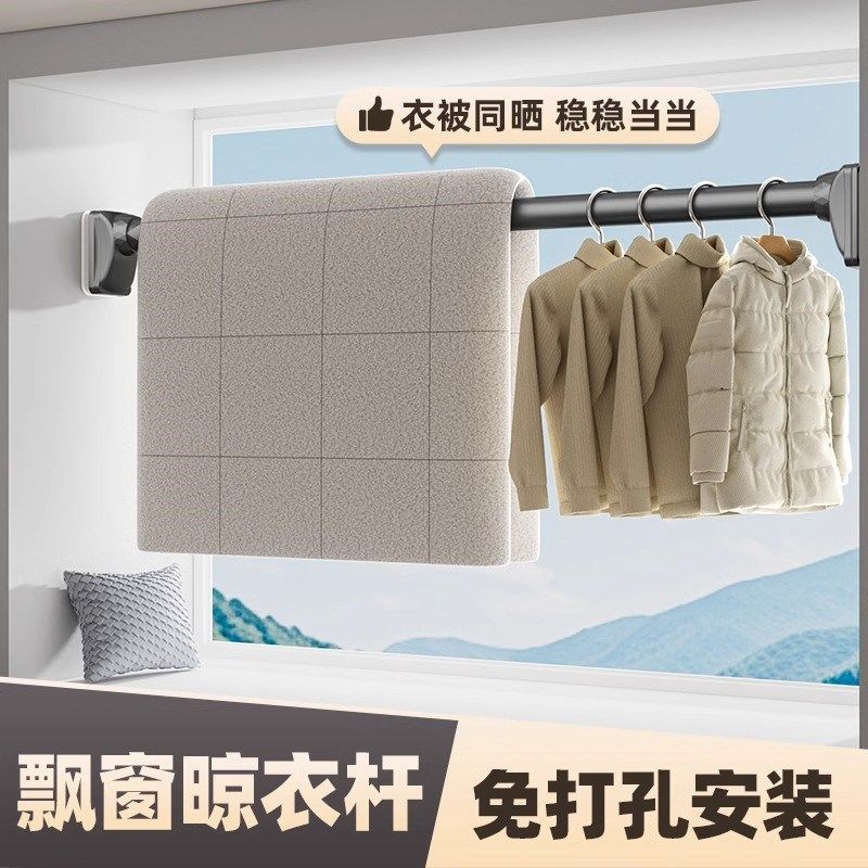 📚 免打孔伸缩固定式飘窗晒衣架晒衣D杆阳台窗帘杆衣柜卫生间撑杆