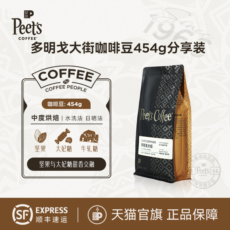 📚 Peets皮爷多明戈大街阿拉比卡新鲜中烘拼配咖啡豆分享装454g