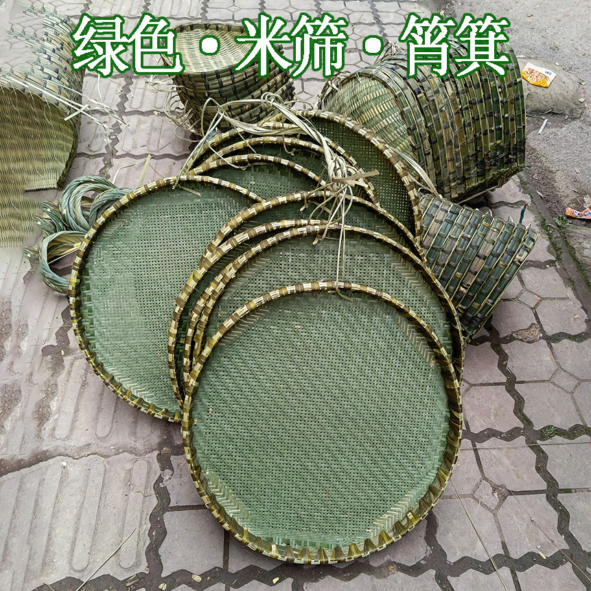 📚 竹青竹皮细孔竹筛子晾晒圆簸箕扁平竹匾手工编织竹制品家用晒粮食