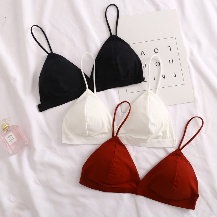 📚 2022法式三角杯比基尼文胸薄款细吊带无钢圈带插垫蕾丝花边内衣
