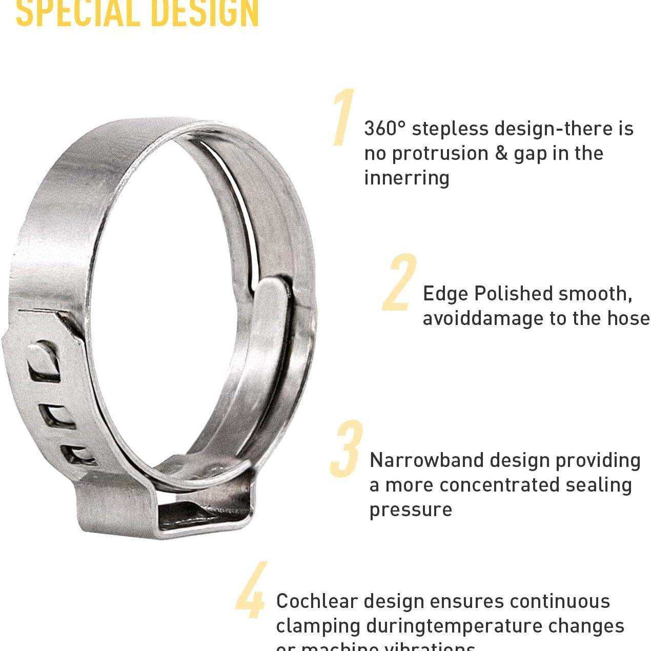 📚 150pcs盒装304不锈钢软卡箍管箍压合软管夹组合套件