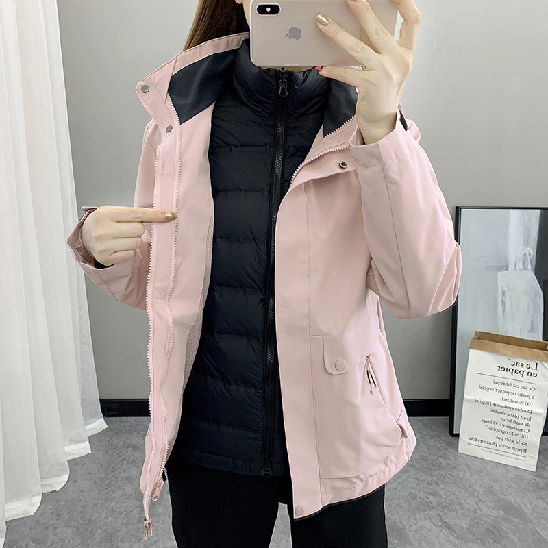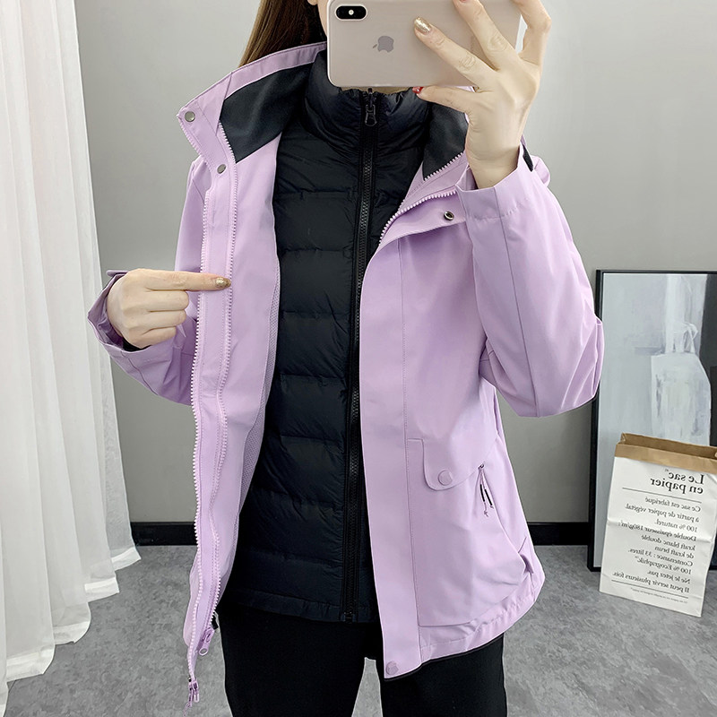 📚 羽绒冲锋衣男女秋冬可拆卸三合一西藏logo定制印字户外登山服外套