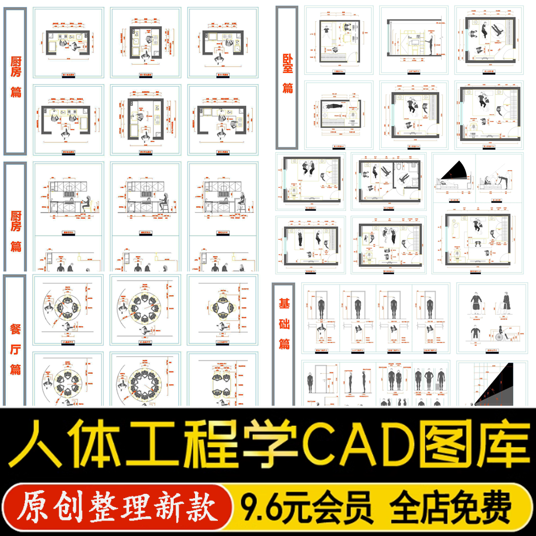 📚 室内全屋人体工程学尺寸参考图卫生间卧室餐厅厨房客厅CAD图库