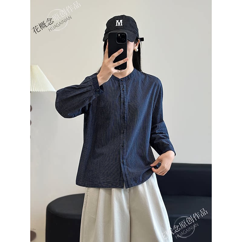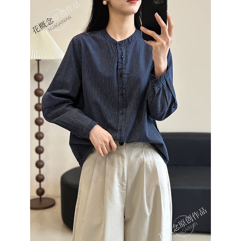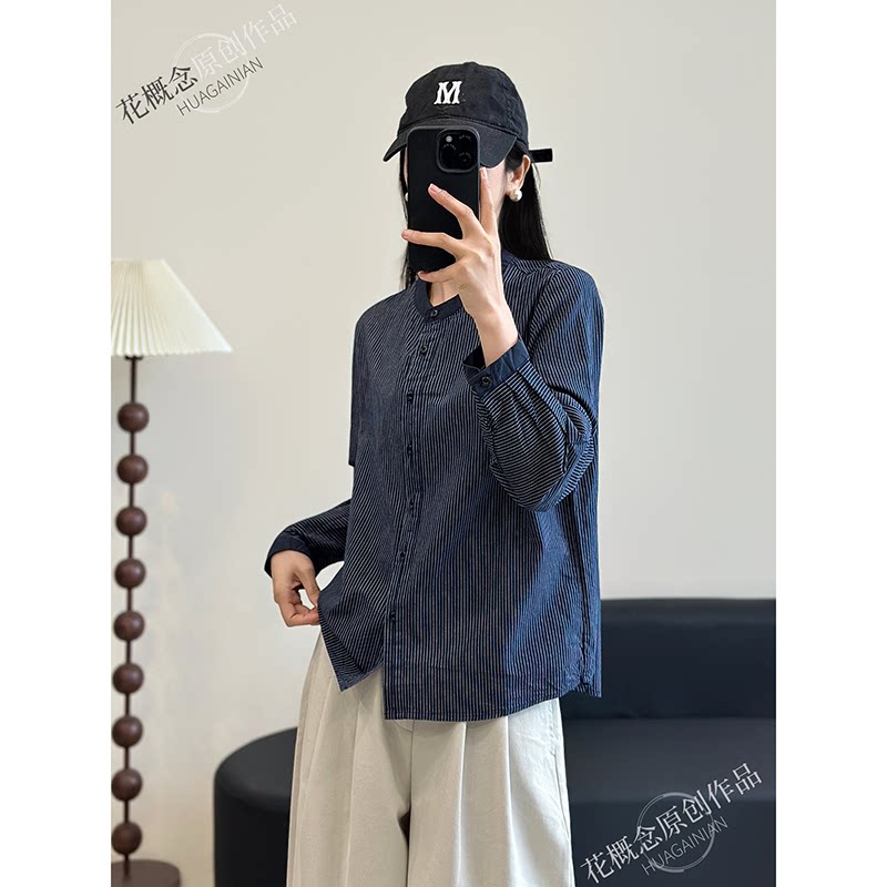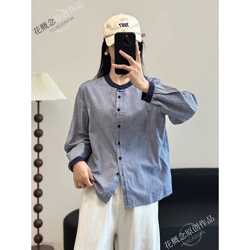 📚 花概念韩系松弛感春季休闲条纹衬衫女长袖拼色显瘦百搭通勤上衣