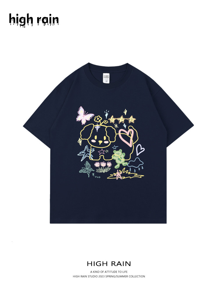 📚 很润工作室 设计感涂鸦狗狗短袖男女纯棉T恤简约分宽松情侣上衣