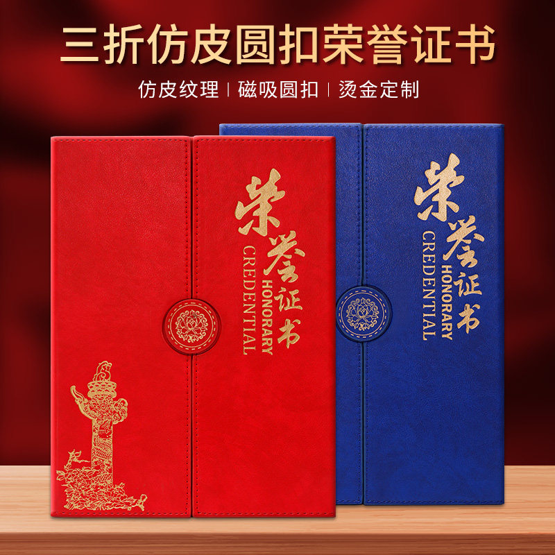 📚 皮革面A4荣誉证书定制烫金奖状创意外壳封皮高档优秀员工获奖内页打印聘书结业企业会员颁奖志愿者证书保护套