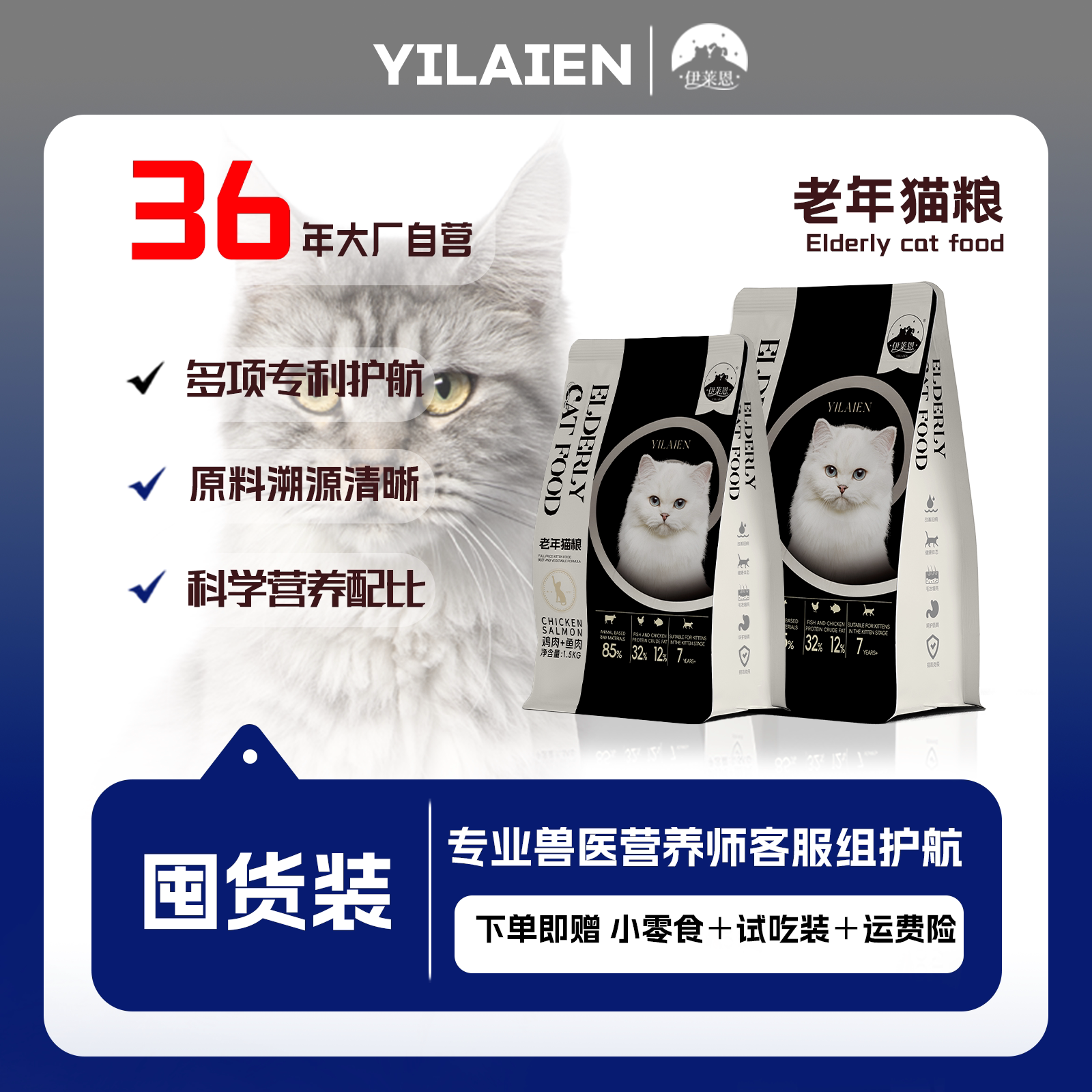 📚 伊莱恩猫粮老年猫粮7岁以上猫粮全品种猫粮全阶全价猫粮膨化猫粮