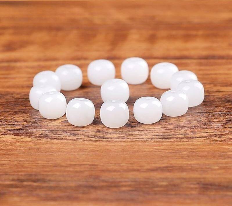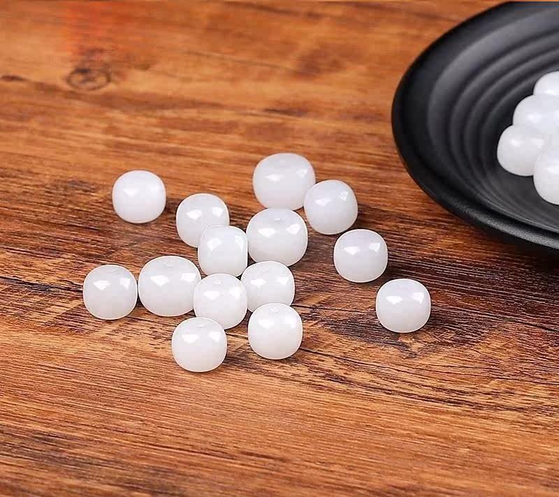 📚 和田玉老型珠羊脂白玉桶珠散珠子青海昆仑和田玉单颗手链项链配珠