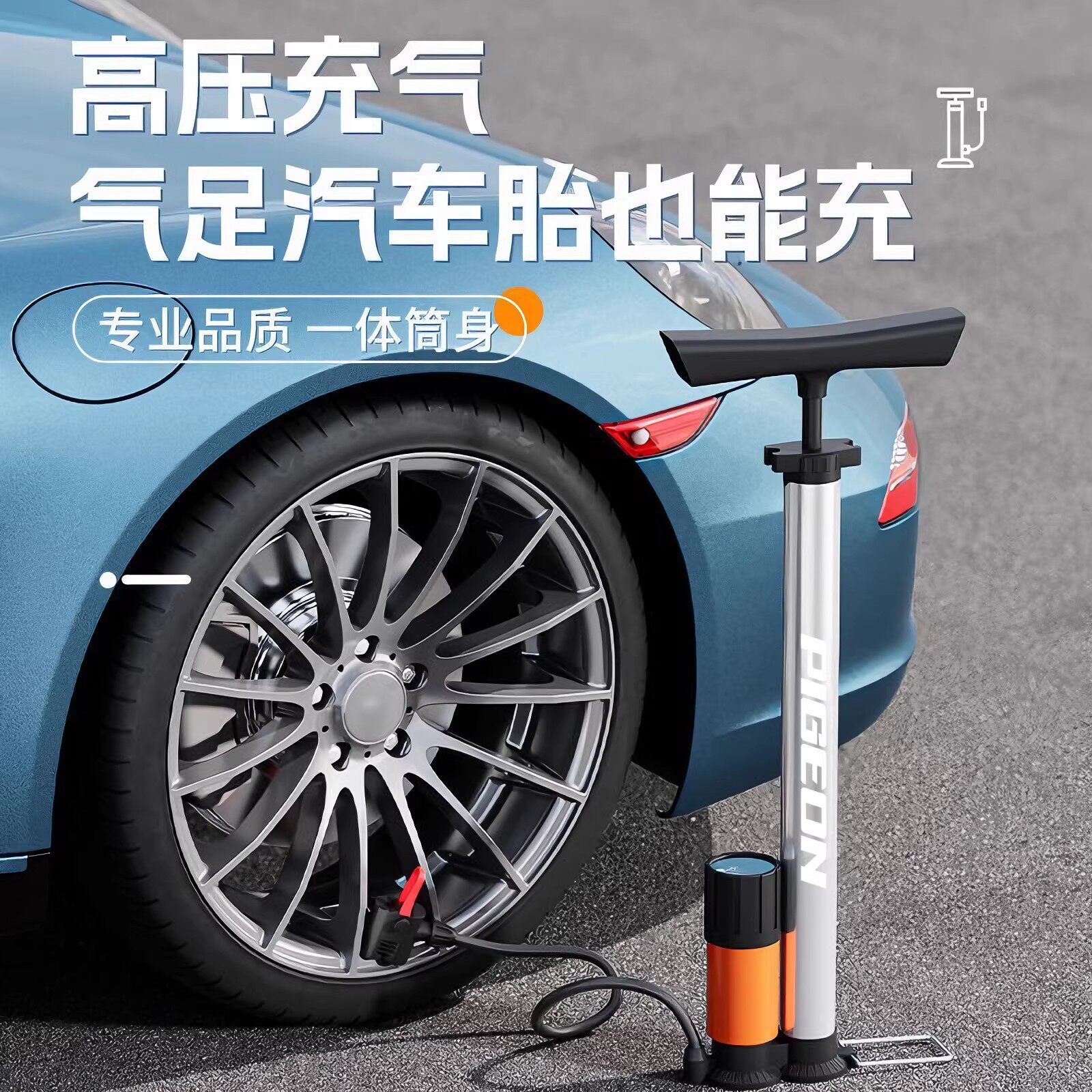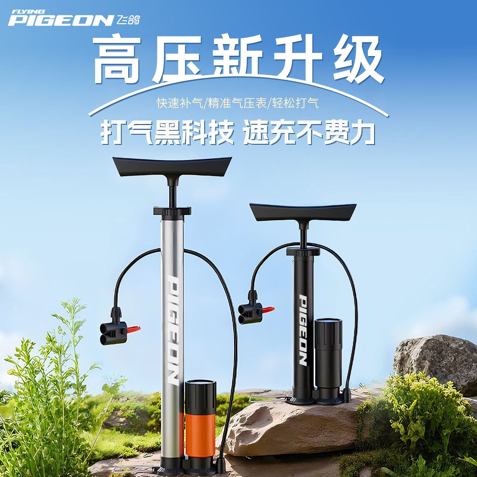 📚 飞鸽自行车打气筒家用通用新型高压爆冲公路电动车专用软管充气筒