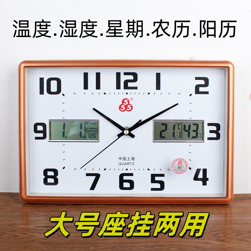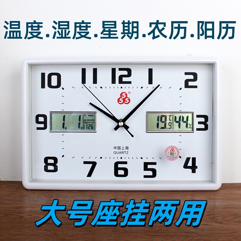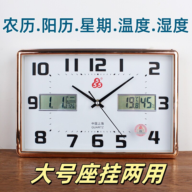 📚 正品三五简约温度湿度农历阳历静音座钟表大字体老人用挂卧室客厅