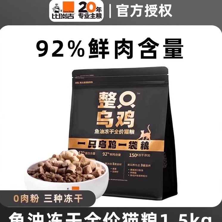 📚 比瑞吉低温烘焙猫粮整只乌鸡鱼油冻干鲜肉1.5kg全价三拼冻干鲜粮