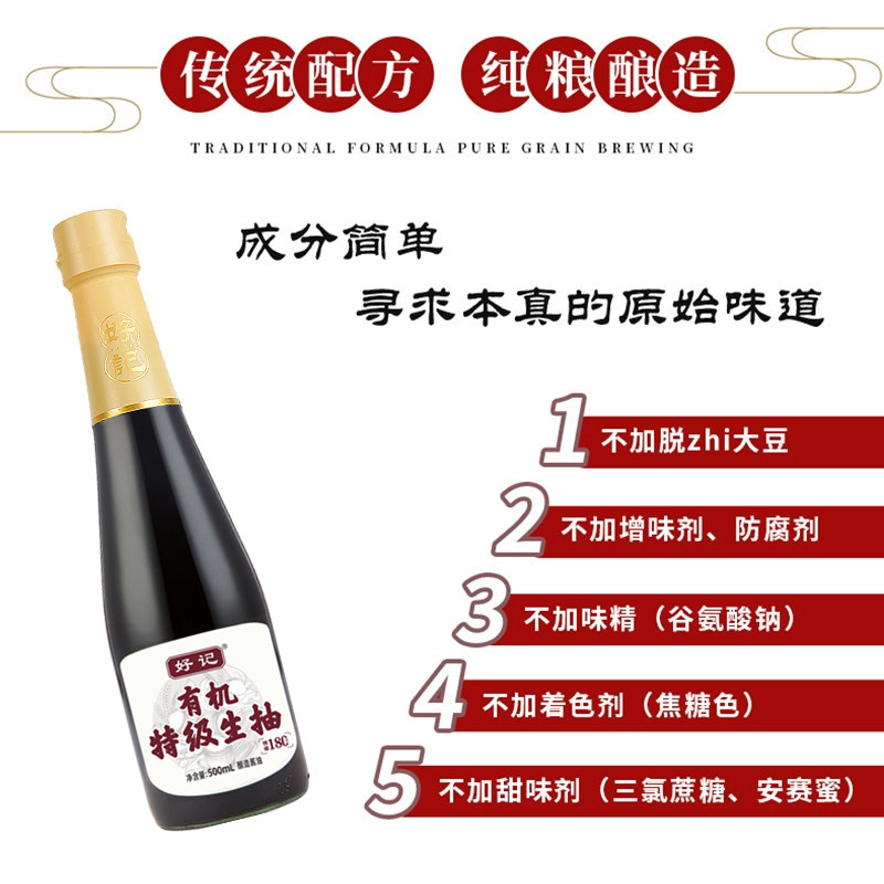 📚 好记有机特级生抽 零添加宋家酱园木桶酿造酱油调味老字号非遗0无