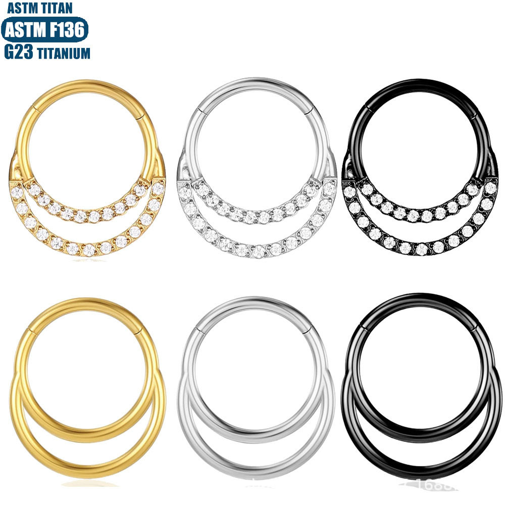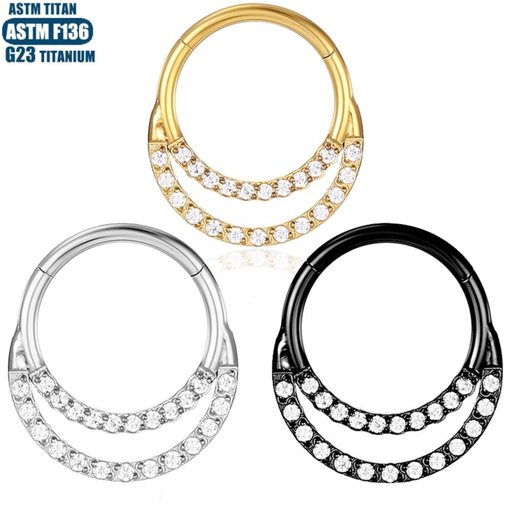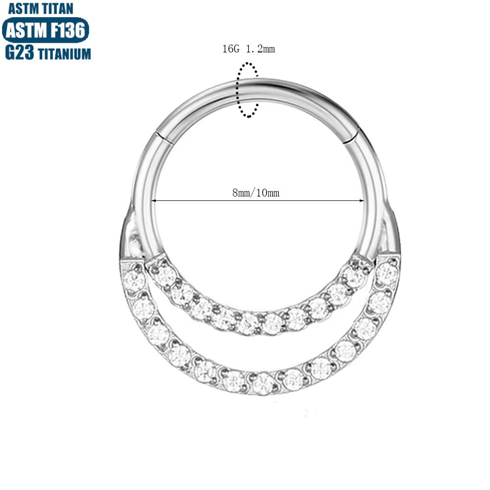 📚 F136钛合金锆石鼻环人体穿刺饰品无缝圈鼻中隔环穿孔月亮耳环耳饰