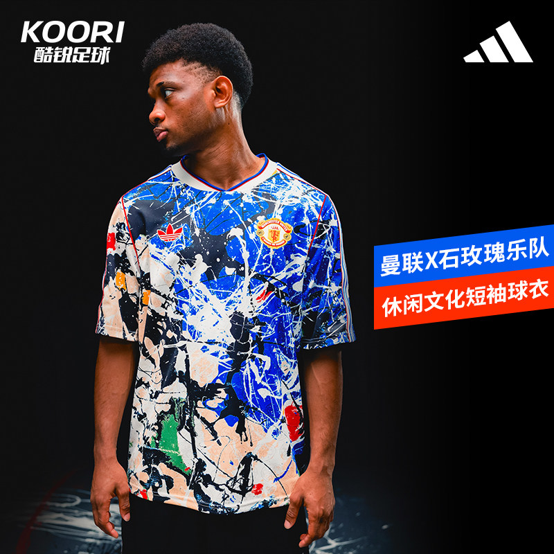 📚 酷锐阿迪达斯2026曼联x SR石玫瑰乐队联名休闲文化短袖球衣JZ7098