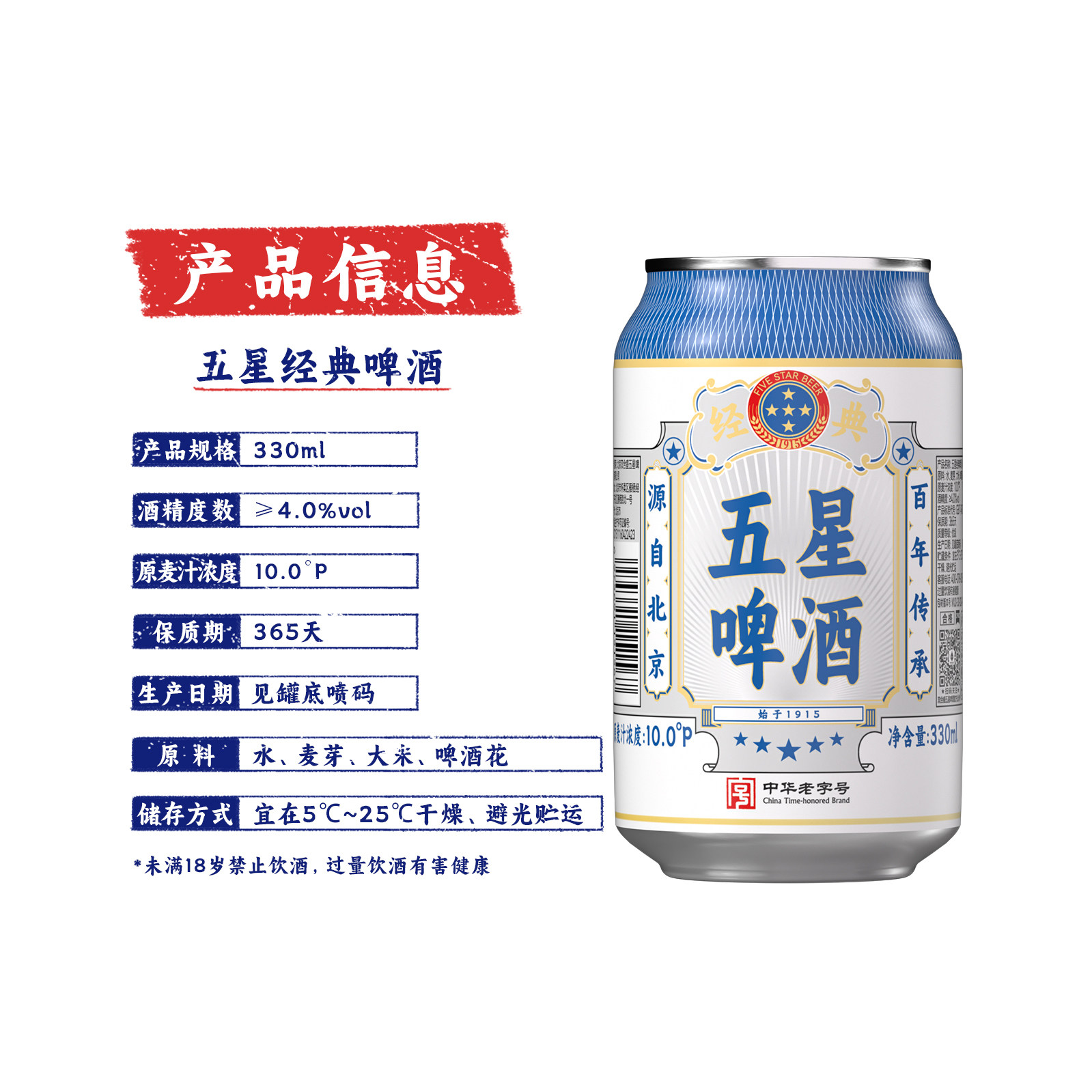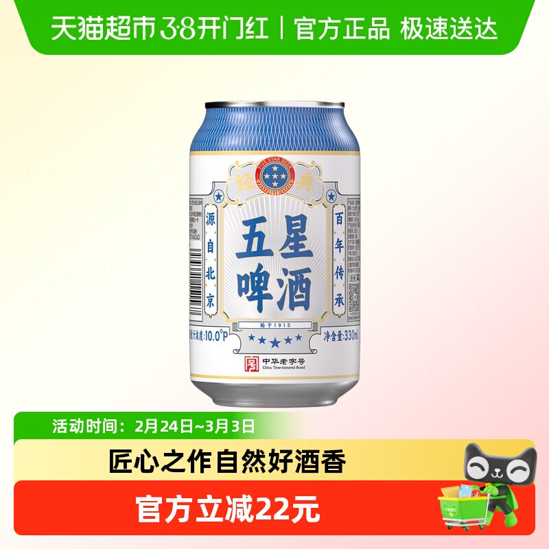 📚 五星经典啤酒330ml*24罐整箱装