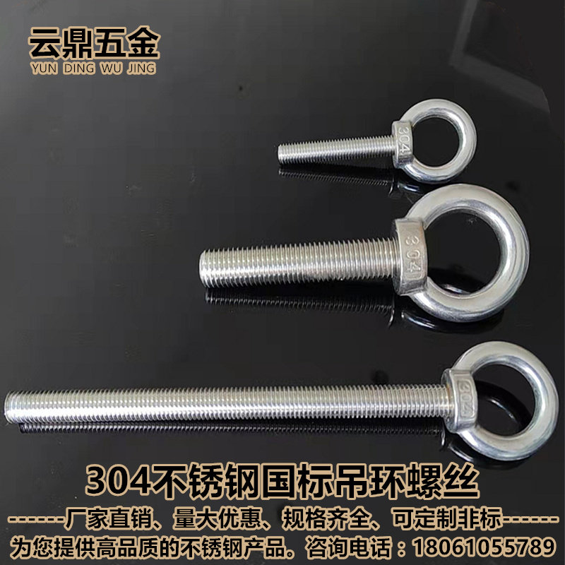 📚 国标304不锈钢吊环螺丝加长吊环螺杆焊接带圈螺栓M18M20M24M30M36