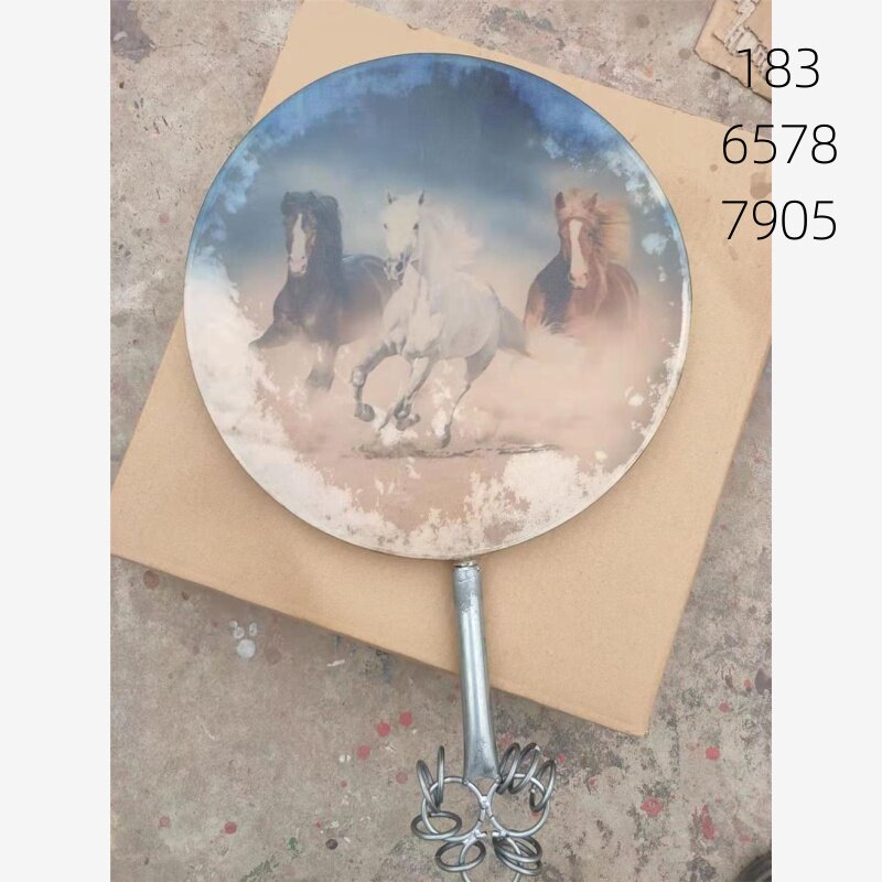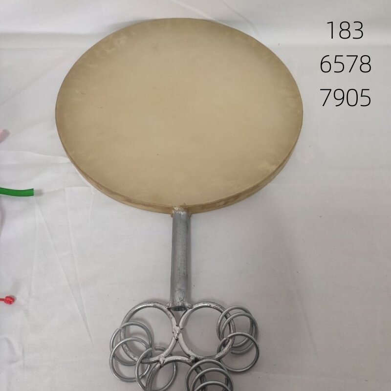 📚 铁质羊皮鼓升级版扇子鼓裹皮技术民族特色羊皮鼓可定作图案带鼓棒