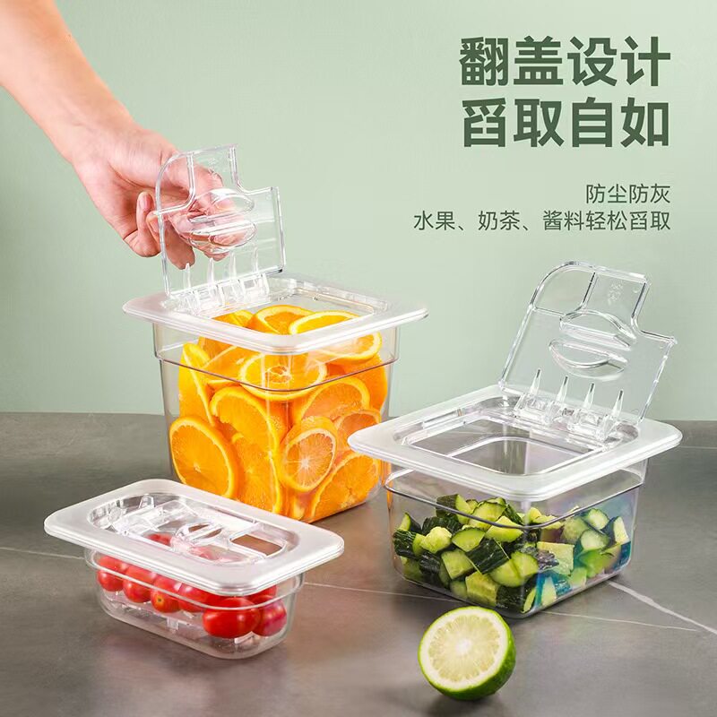📚 亚克力份数盆奶茶店麻辣烫专用塑料透明果酱珍珠翻盖自助餐分数盆