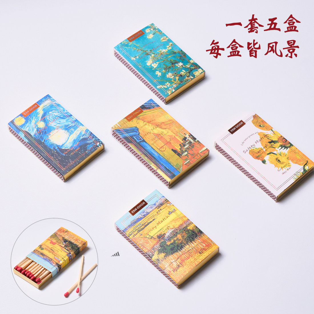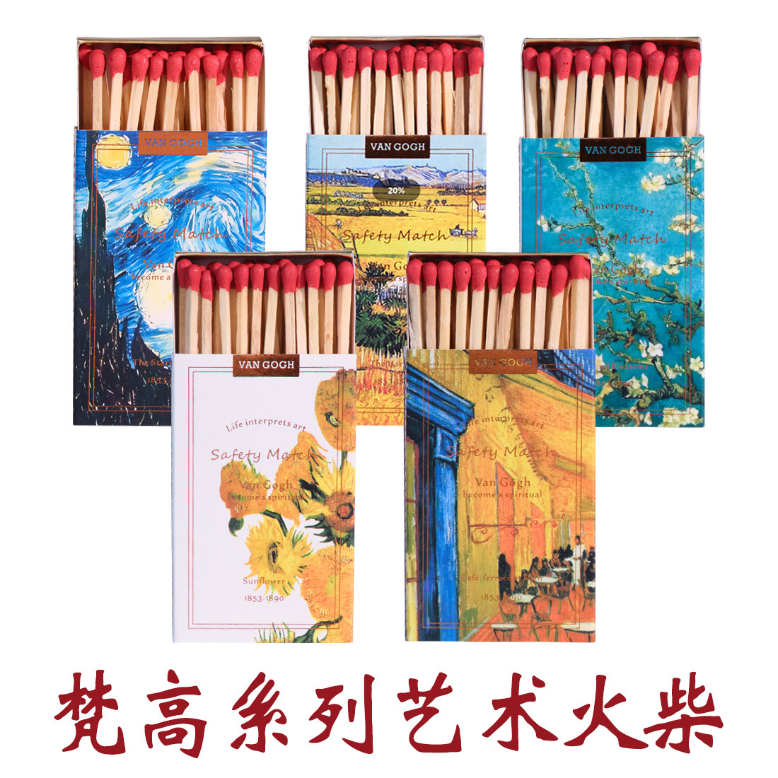 📚 艺术火柴高档香薰长杆洋火火柴礼盒一次性安全梵高火柴7.5厘米