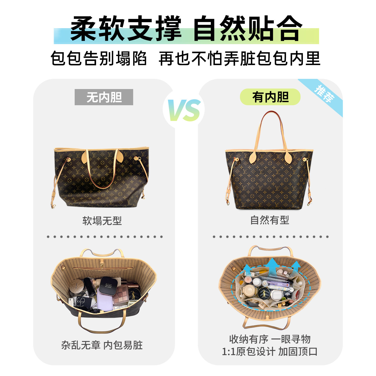 📚 适用于lv neverfull小/bb/中/大号杜邦纸内胆包中包轻薄防水收纳