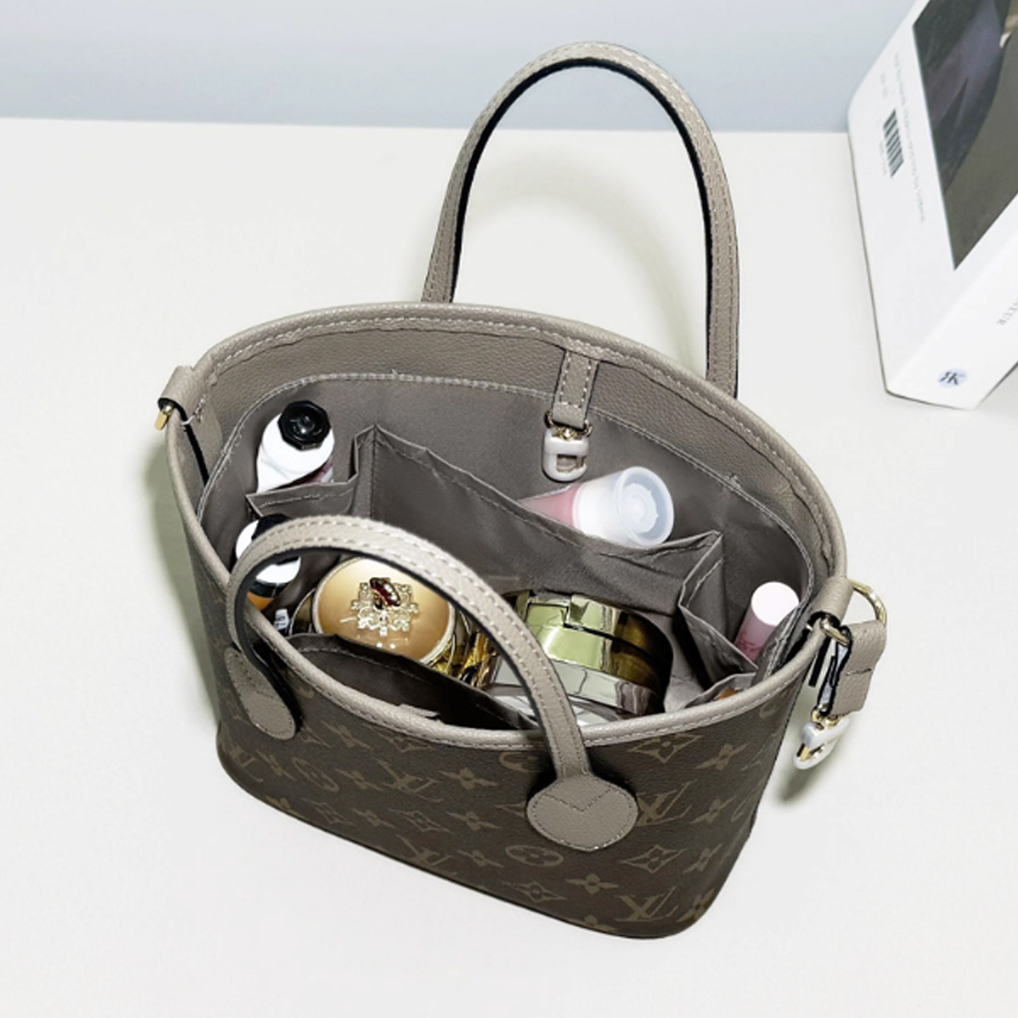 📚 宛乐适用Lv双面neverfull BB内胆购物袋拉链中号tote轻薄衬袋包撑