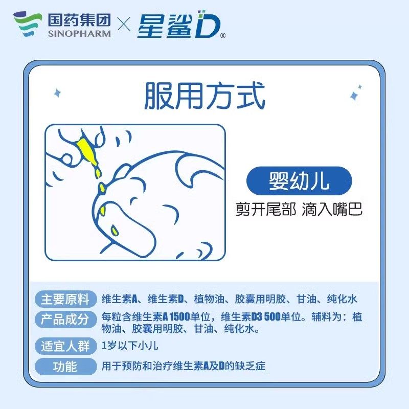 📚 星鲨娃の福正品维生素AD滴剂胶囊一岁以上48粒佝偻症夜盲症d3颗粒