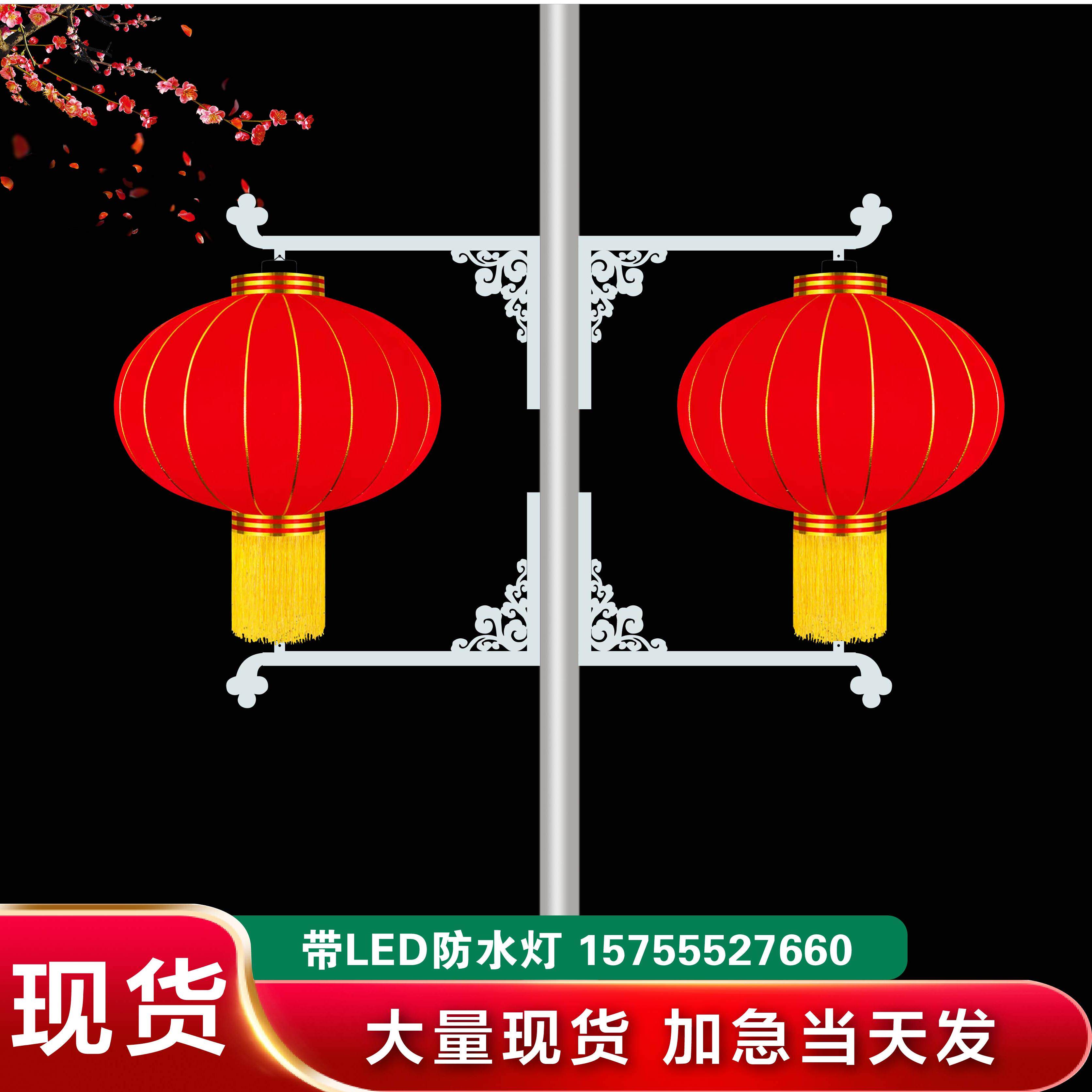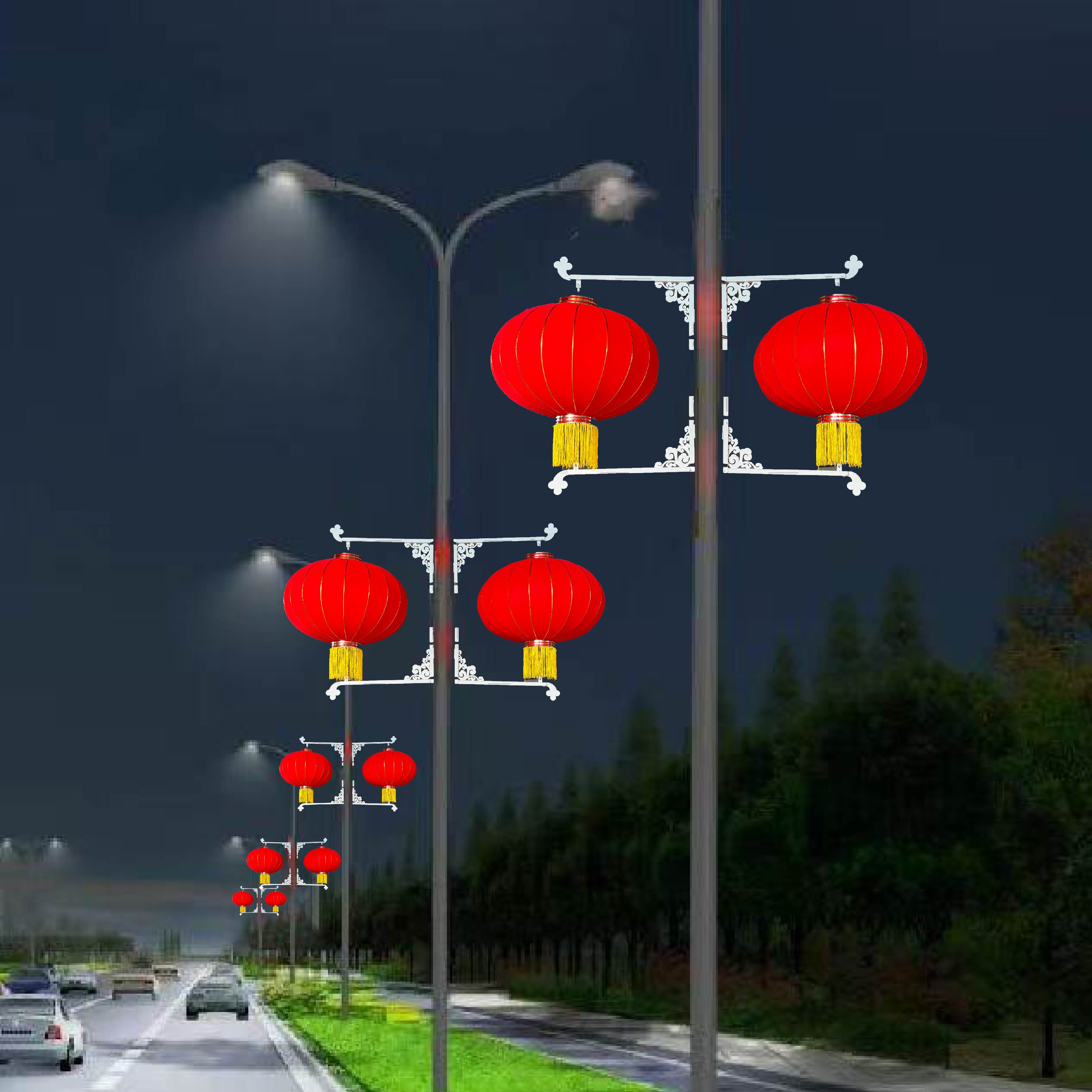 📚 灯笼户外大红灯笼串路灯杆装饰灯笼支架定制路灯杆中国结灯杆灯笼